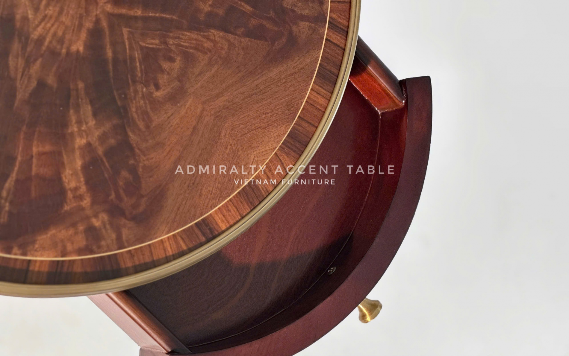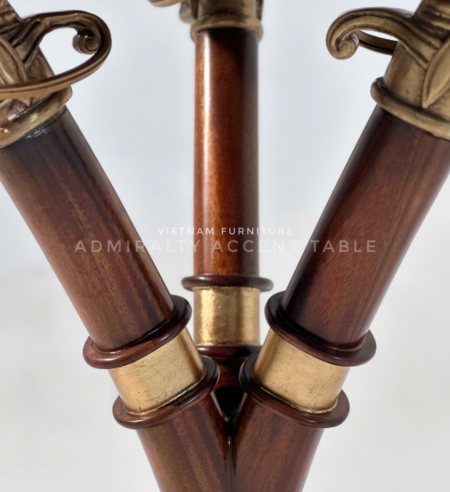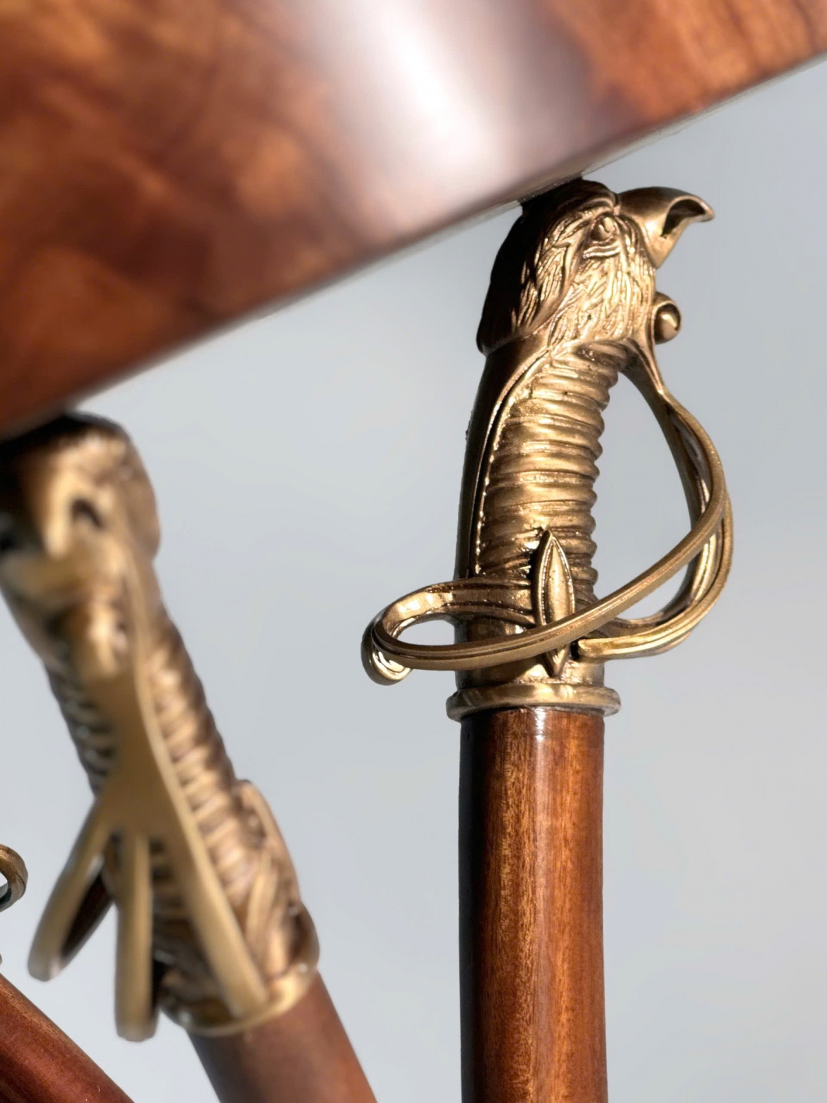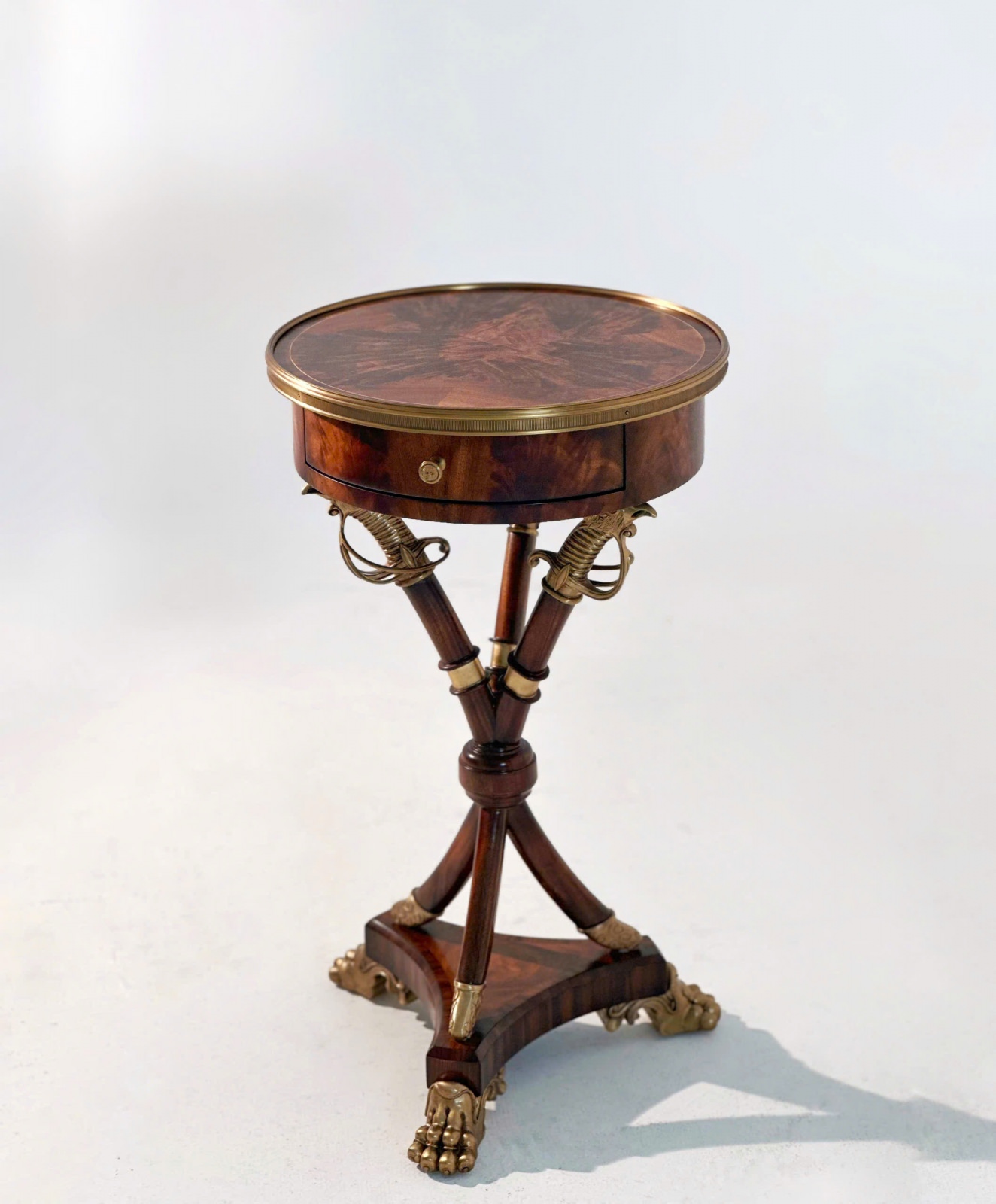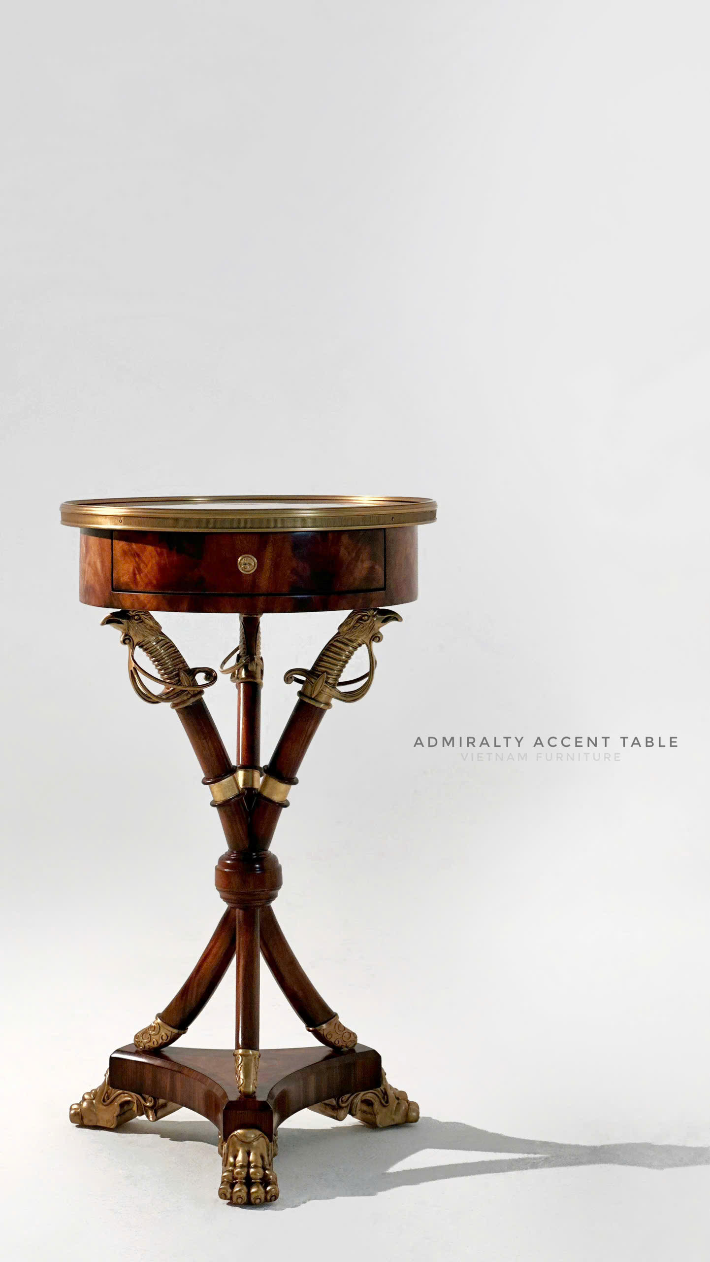 Một chiếc bàn bằng gỗ gụ, mặt bàn viền đồng thau trên ba thanh kiếm có chuôi bằng đồng thau gắn trên đế bệ hình ba lá với chân bàn chân sư tử bằng đồng. Lấy cảm hứng từ Bá tước Spencer thứ 2, được bổ nhiệm làm Chúa tể thứ nhất của Đô đốc vào năm 1795, theo nguyên mẫu thời kỳ Regency.