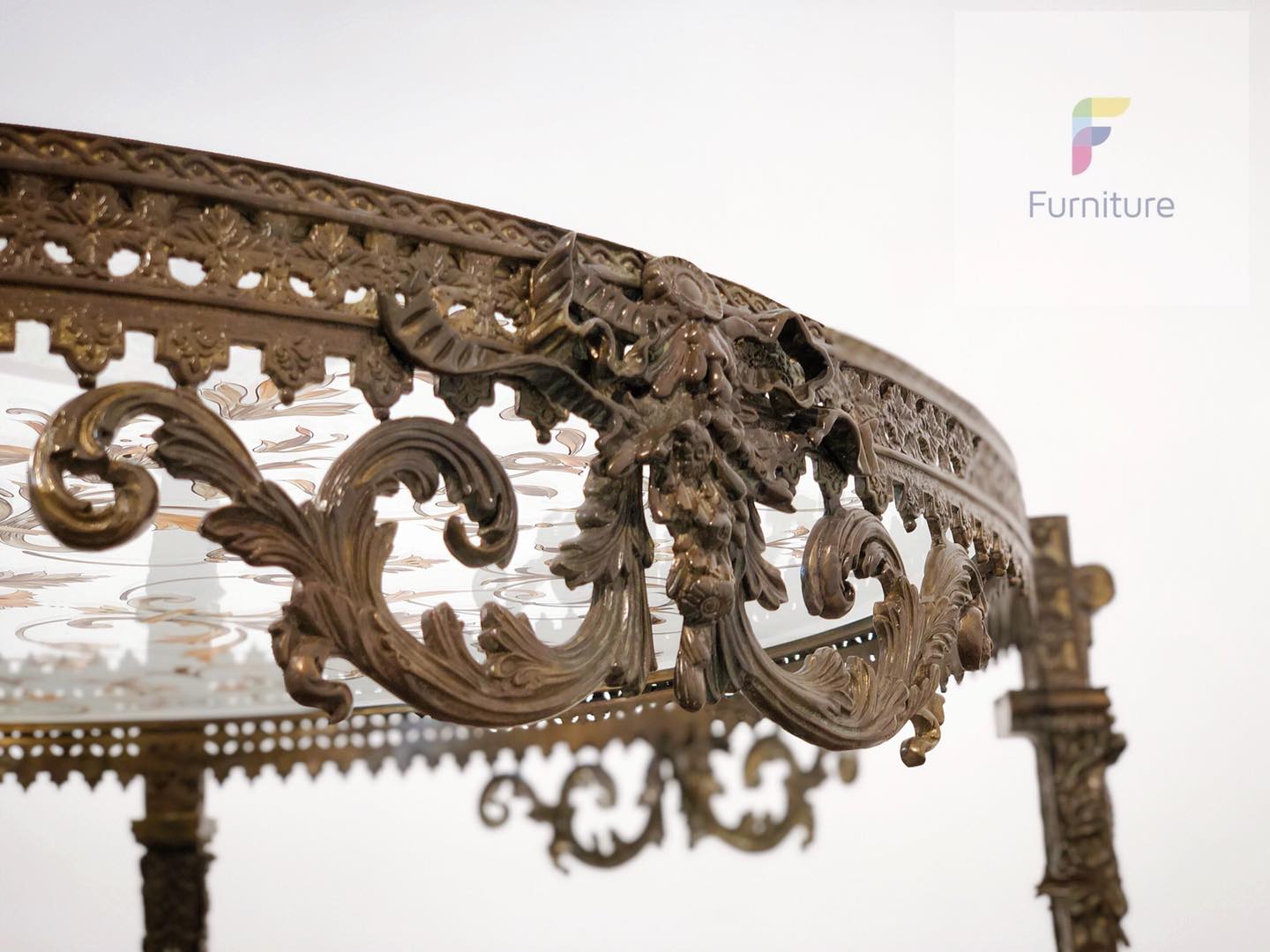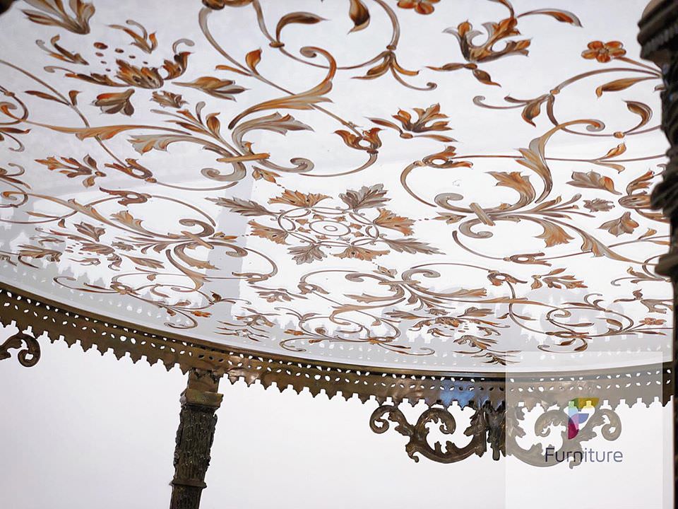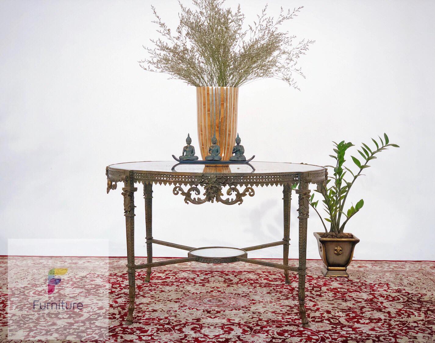 Bàn Center đồng đen vẽ hoa