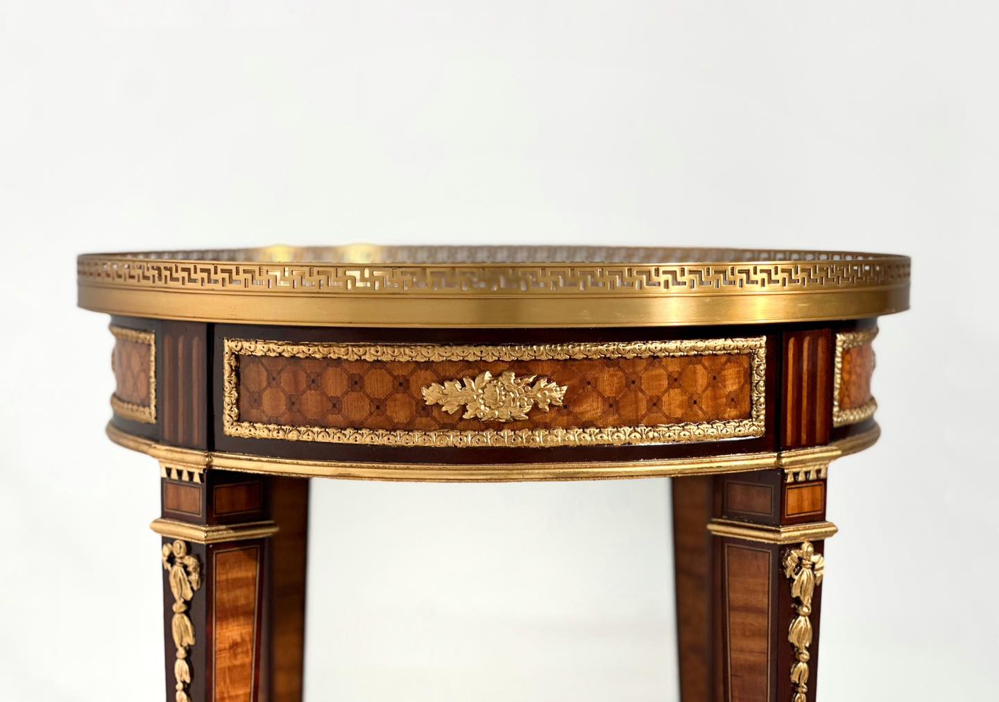 • Khác với sự cầu kỳ, uốn lượn phóng túng của phong cách Louis XV (Rococo), chiếc bàn này đại diện cho sự trở lại của các giá trị Hy Lạp - La Mã cổ đại.