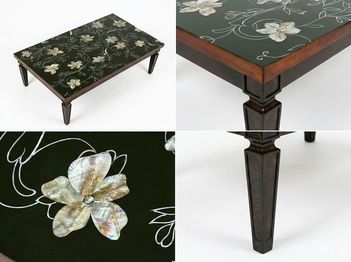 Buổi sáng, khi nắng sớm chạm vào mặt gỗ, những hoa văn trên bàn khẽ bừng lên như vừa thức giấc. Đêm xuống, khi trăng tròn tỏa sáng, chiếc bàn lại trở thành một mảnh ghép tĩnh lặng trong căn phòng. Nó không chỉ là trái tim của phòng khách, mà còn giữ cho bạn một khoảng bình yên dịu dàng.