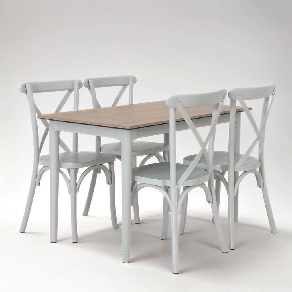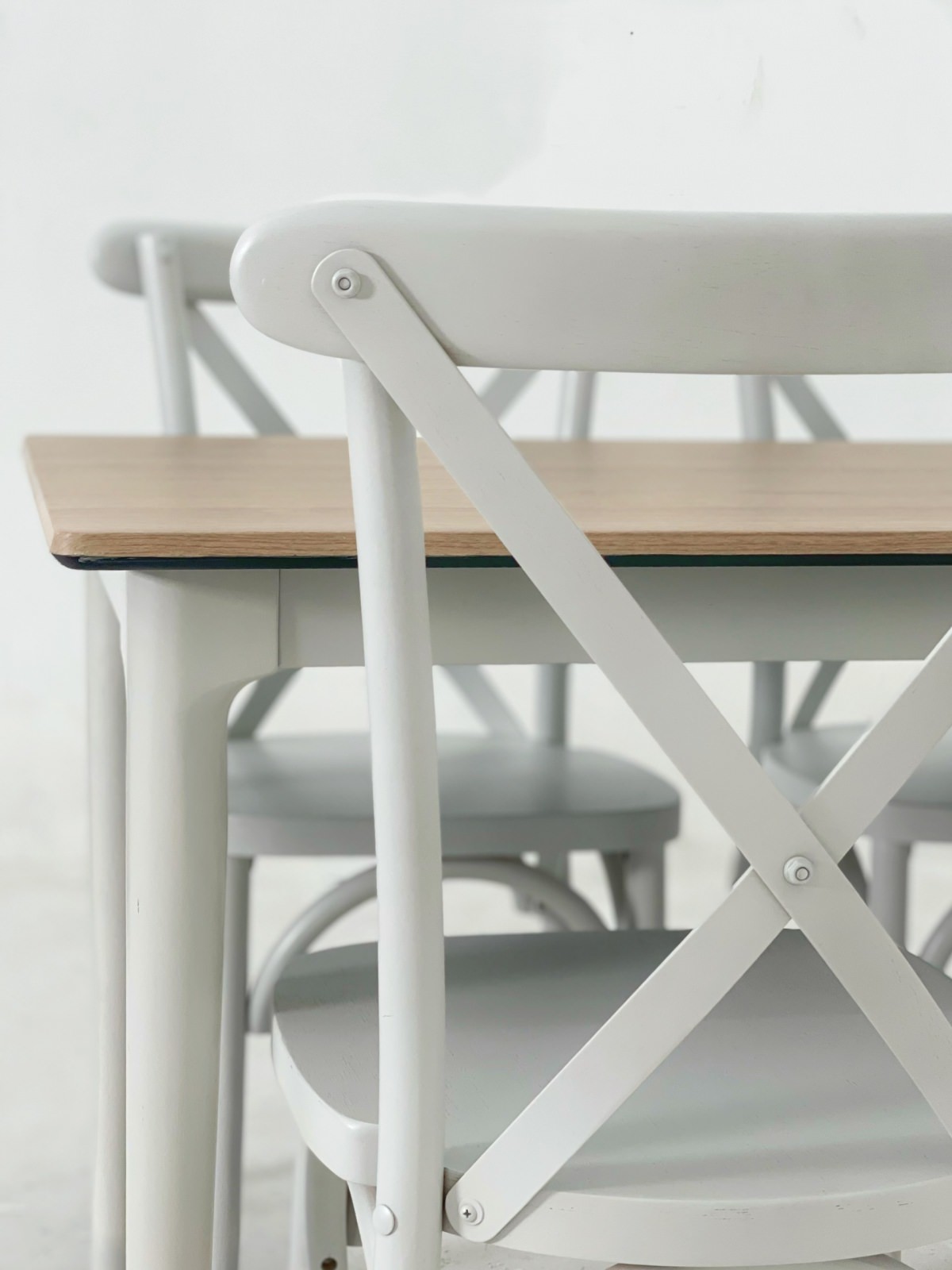 Bộ bàn ăn Cross - 4 ghế - Trắng xám