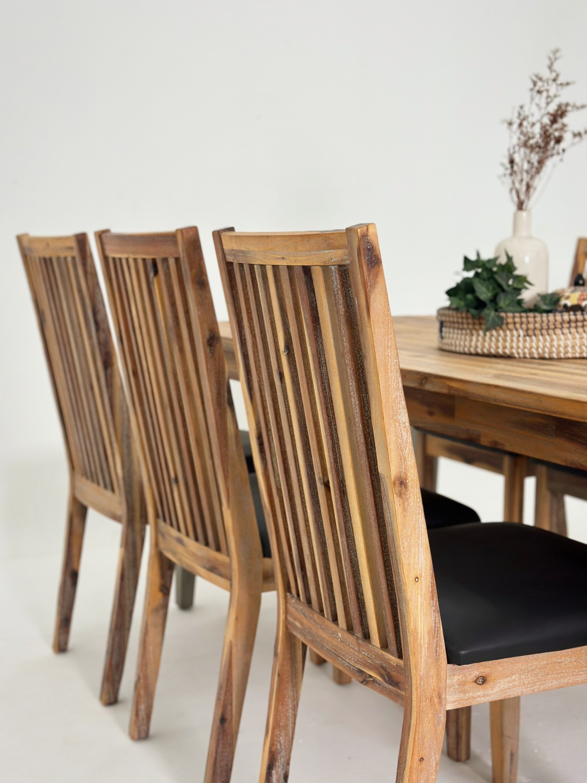 Ghế: 45x50cm H100cm Hoàn thiện: Gỗ tràm, da PU.