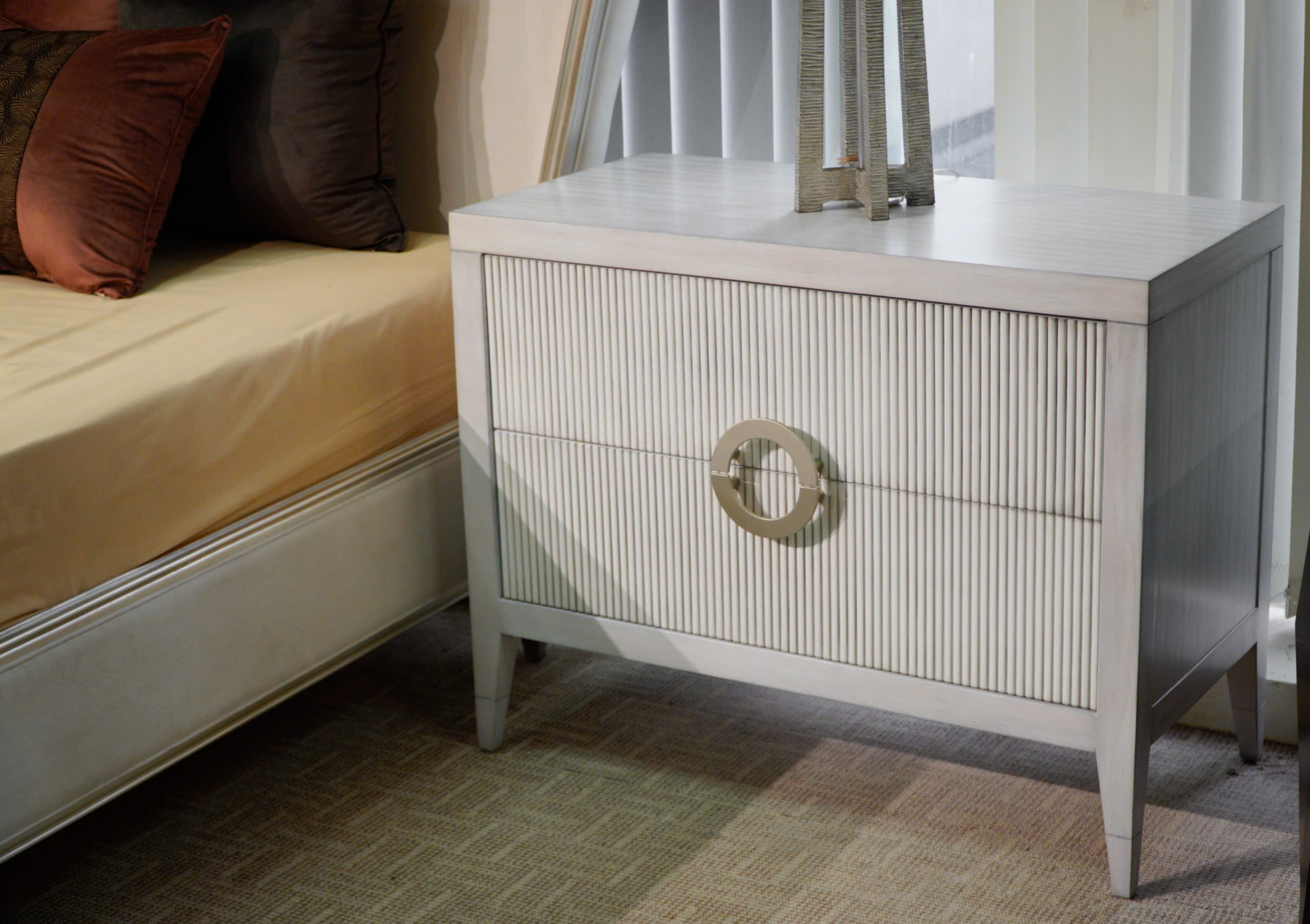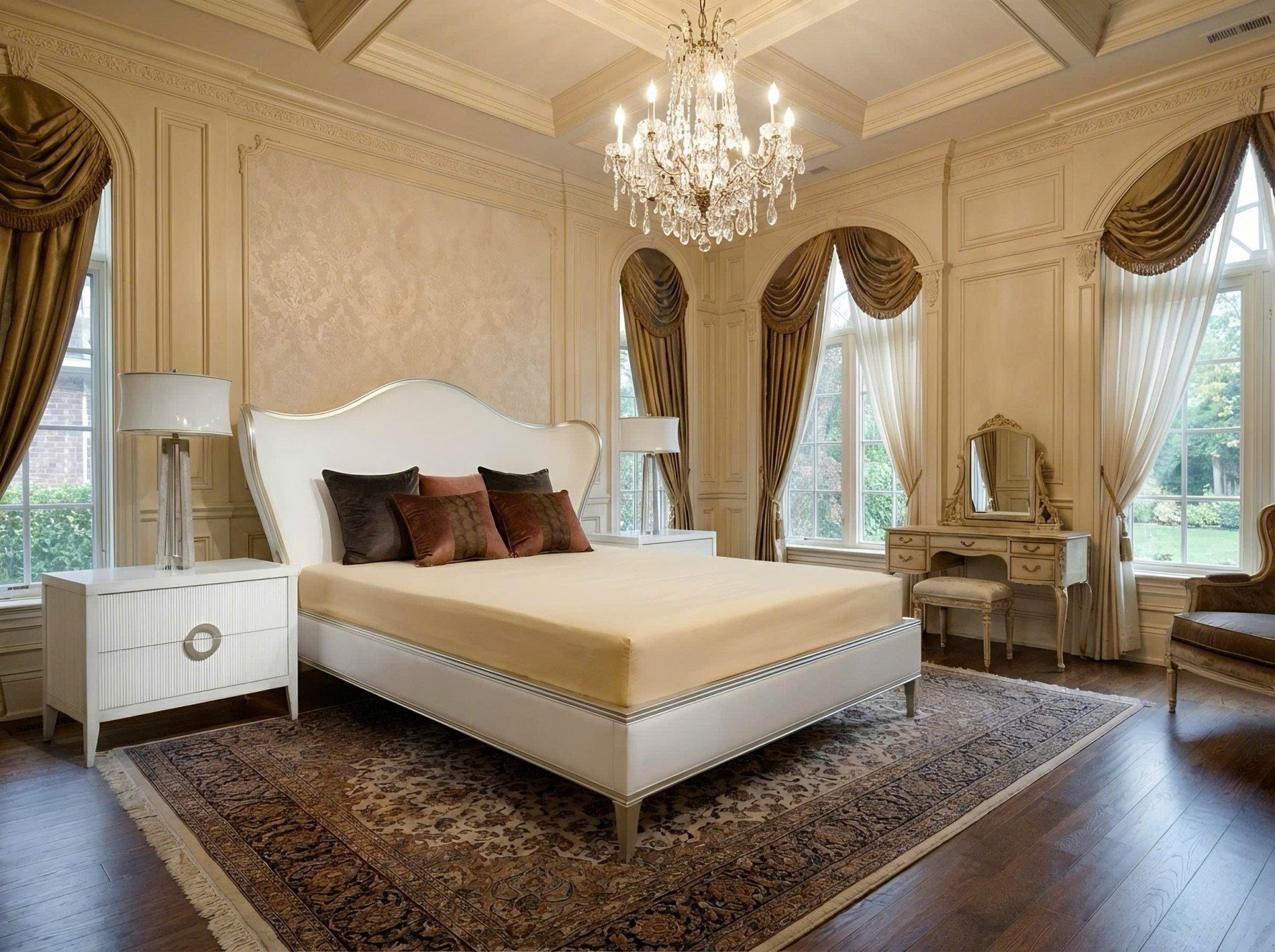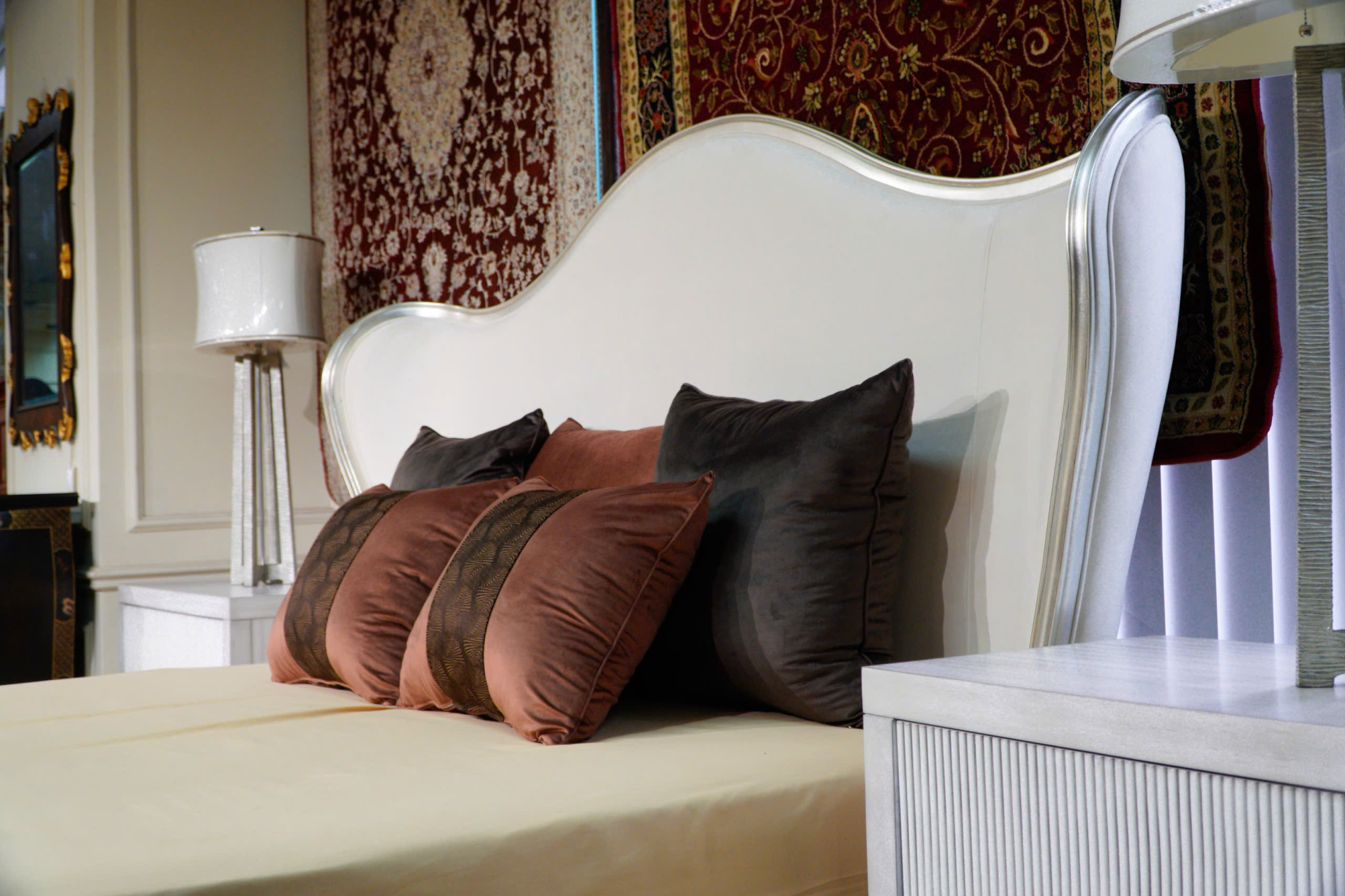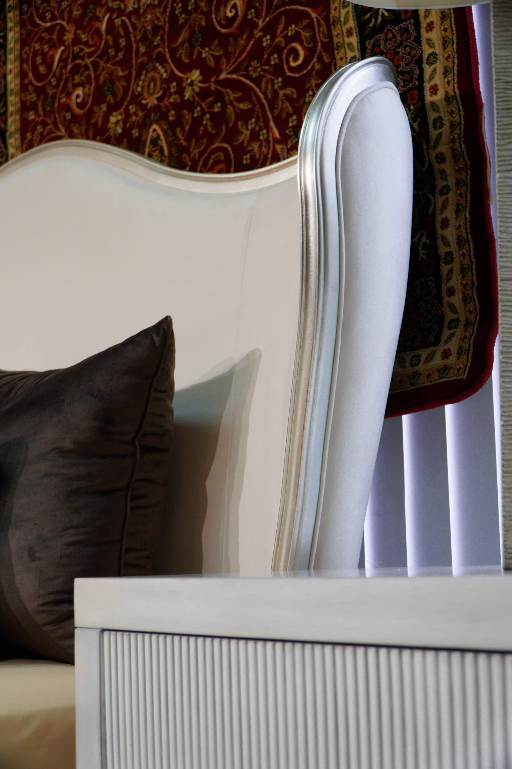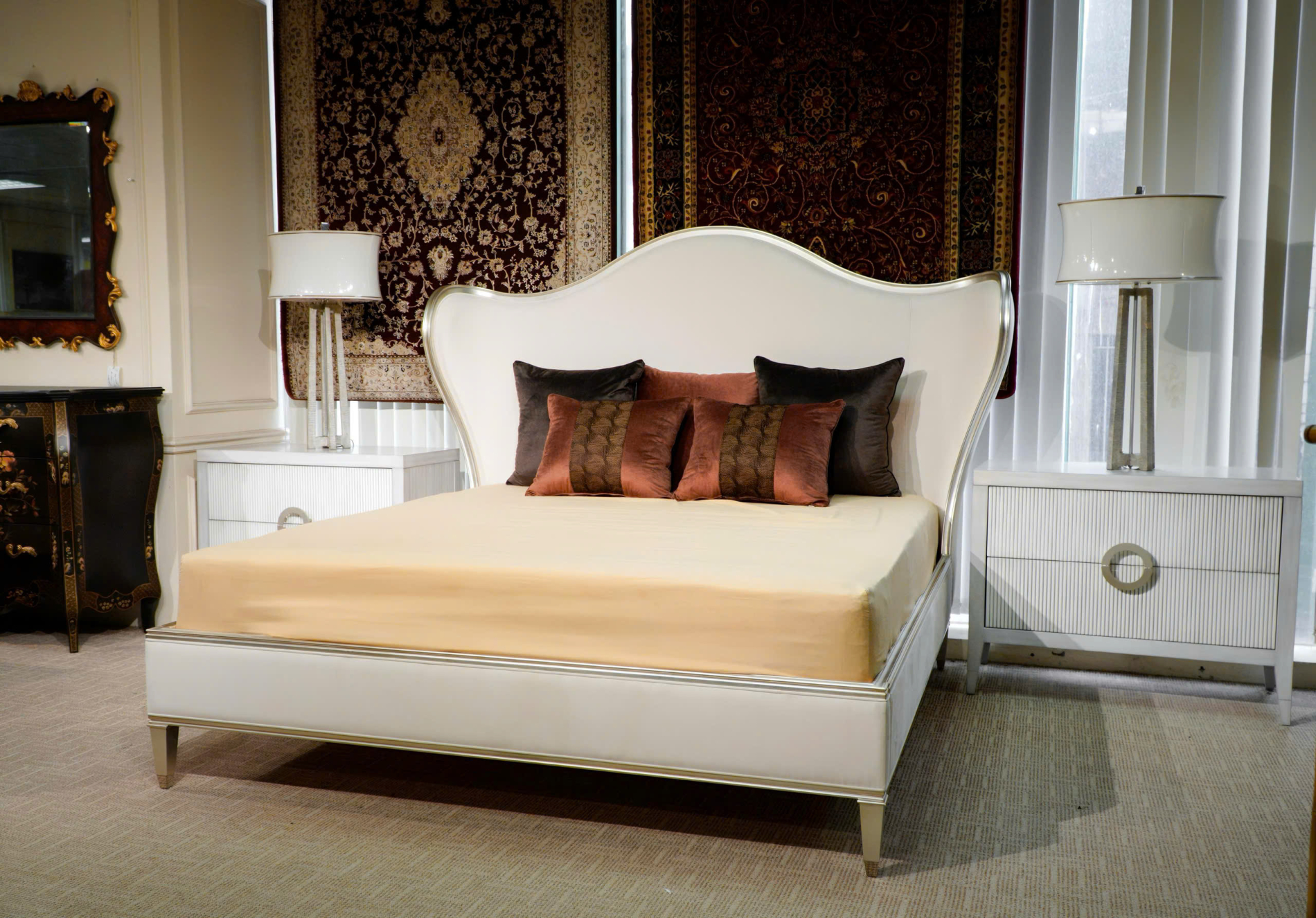 Điểm nhấn đắt giá nhất của Bedtime Beauty nằm ở phần đầu giường camel-back được cách tân đầy táo bạo. Những đường cong mềm mại kết hợp cùng phần cánh (wings) rộng mở tạo nên một cấu trúc bề thế, bao bọc và mang lại cảm giác an tâm như một ngai vàng đích thực.