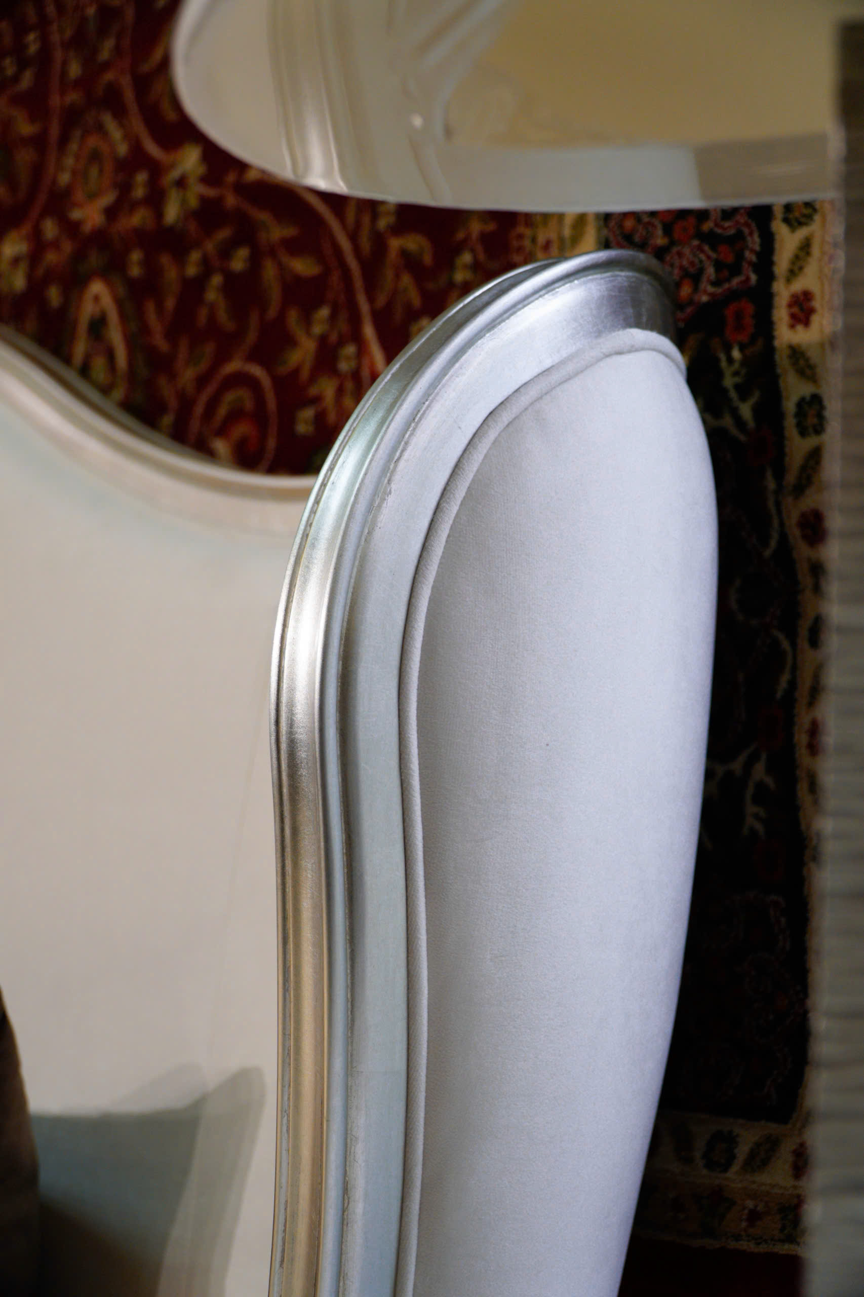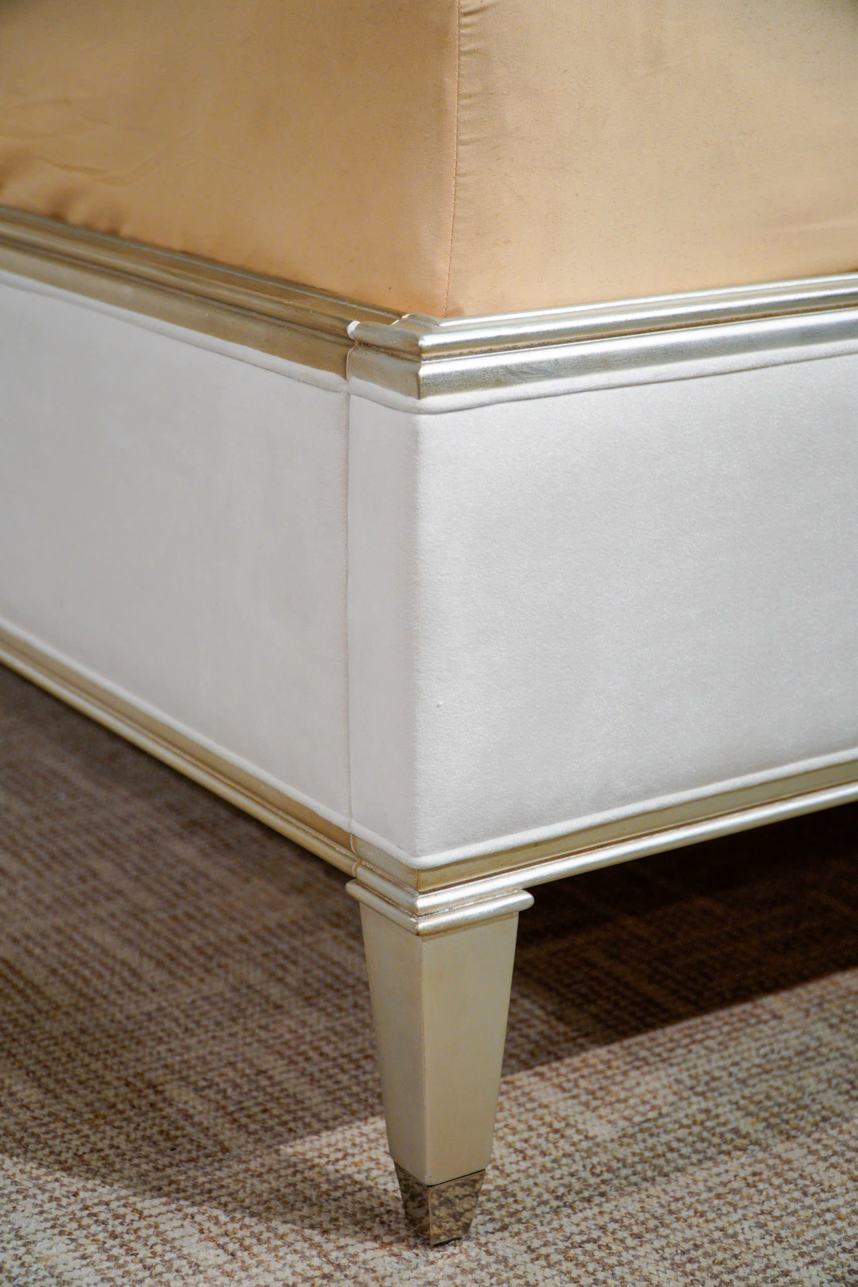 Phần chân gỗ thấp với thiết kế vuông thuôn nhỏ dần (square-tapered) được chạm trổ tỉ mỉ, tạo nền tảng vững chãi nhưng vẫn giữ được nét thanh thoát. Sự kết hợp giữa các đường nét cổ điển và phong cách hiện đại giúp sản phẩm dễ dàng thích nghi với mọi không gian nội thất từ Neo-Classic đến Contemporary.