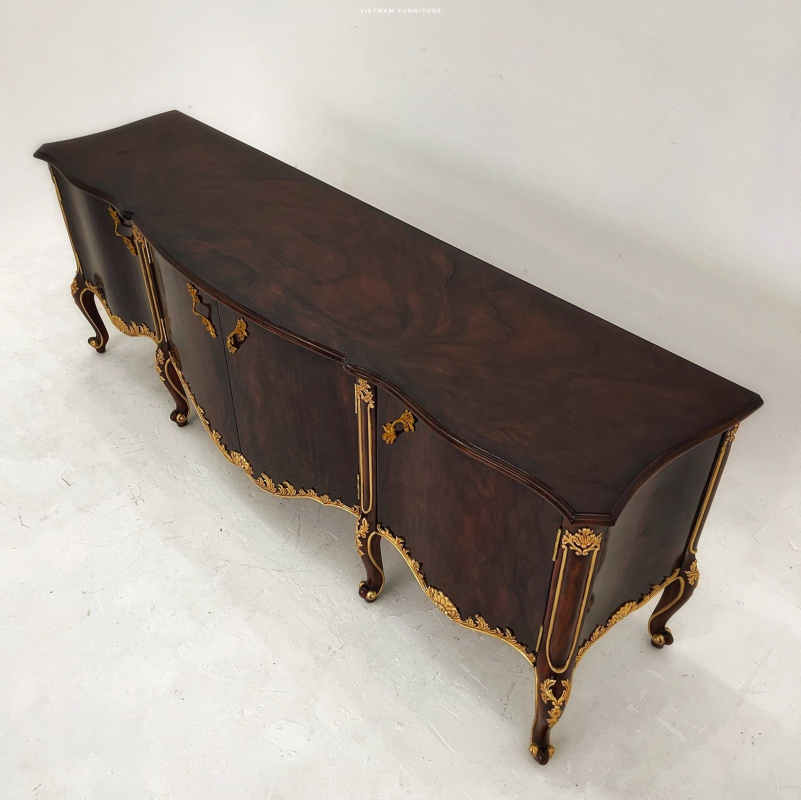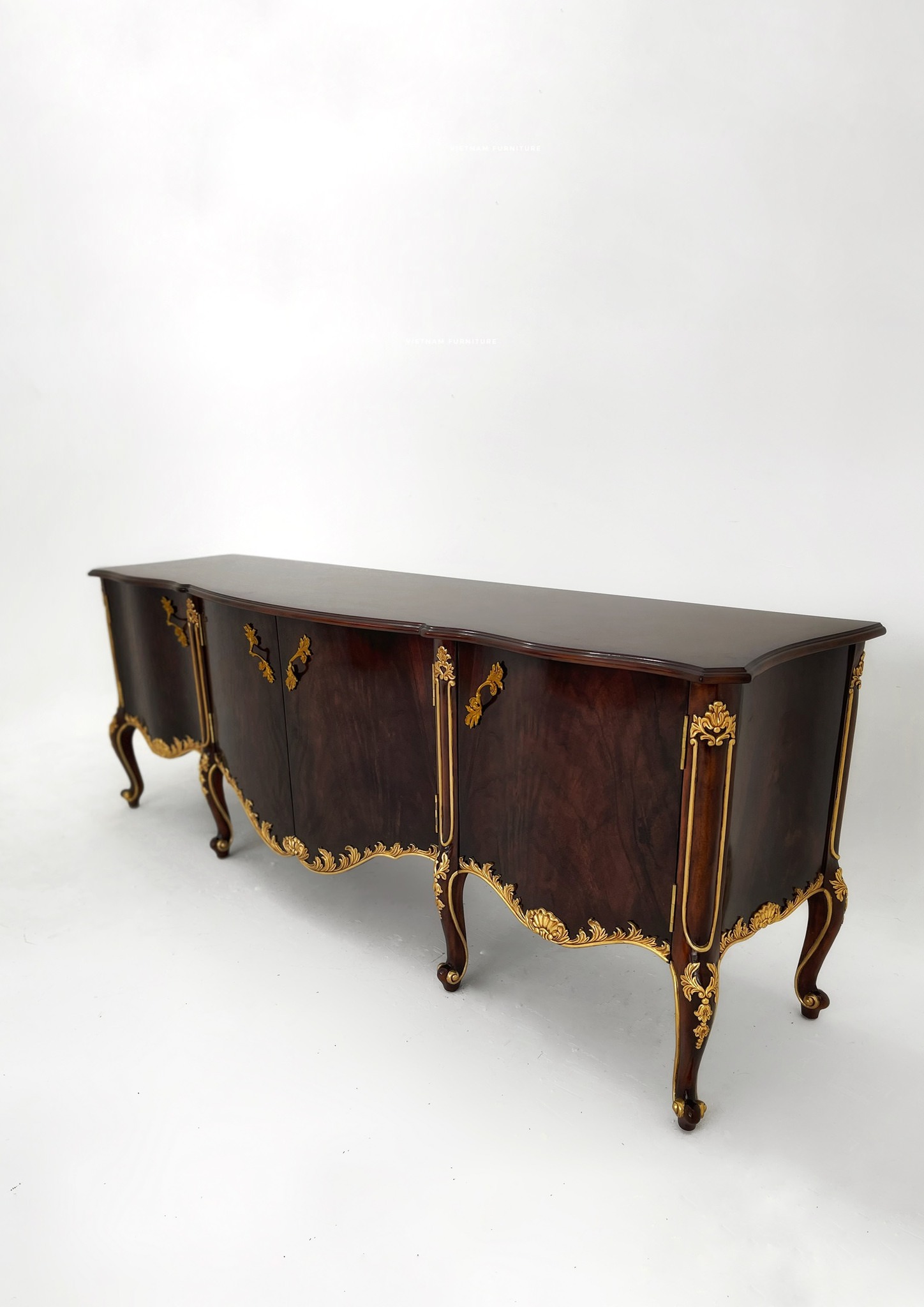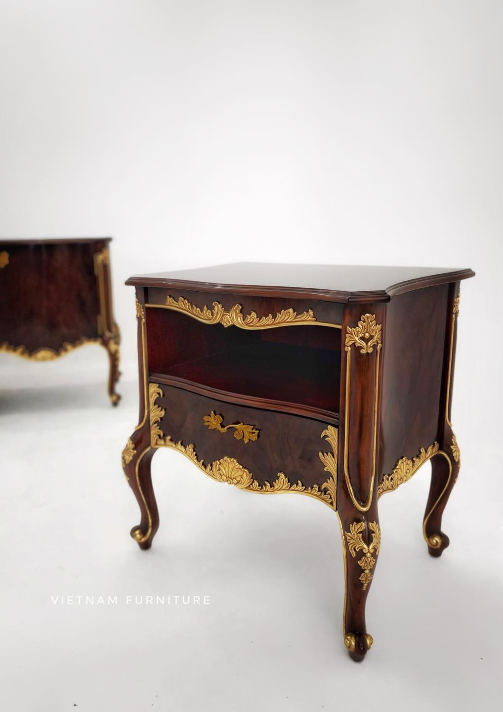 Hoàn thiện: gỗ Mahogany, sơn gốc tự nhiên, sơn giả cổ, lá vàng.