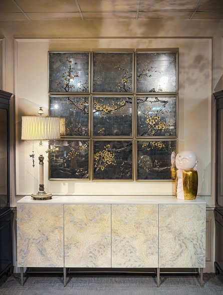 Điều đặc biệt của chiếc sản phẩm này là sự kết hợp hài hòa giữa nền gương giả cổ với họa tiết hoa. Hiệu ứng mờ ảo của nền gương tạo chiều sâu cho bức tranh, làm nổi bật những cánh hoa được vẽ tỉ mỉ với màu sắc tươi tắn. Mỗi chi tiết đều được chăm chút kỹ lưỡng, từ những đường nét mảnh mai của cánh hoa đến sự chuyển màu tinh tế.