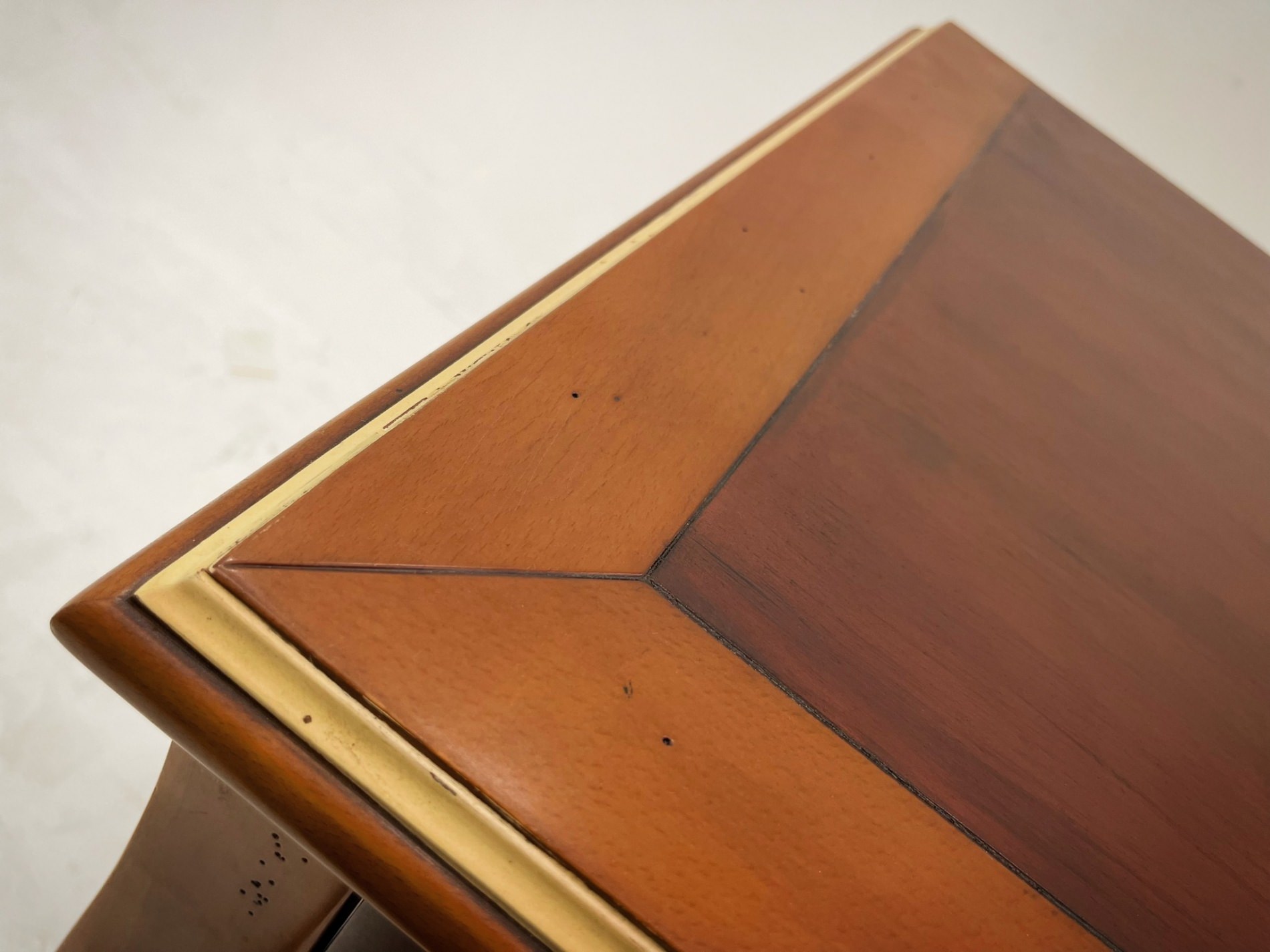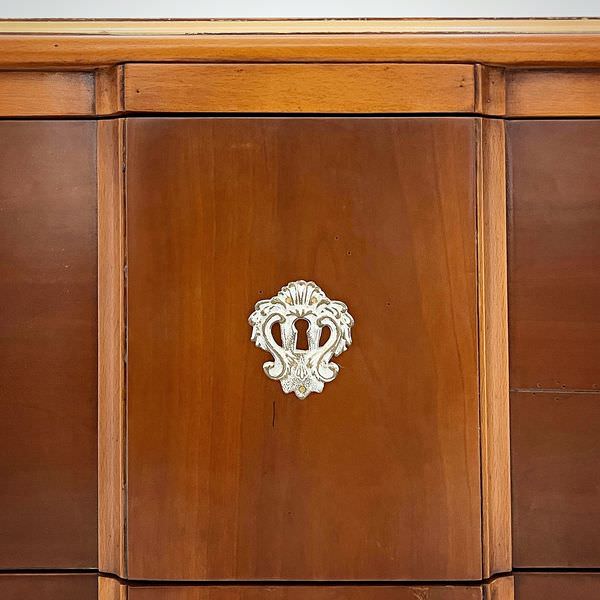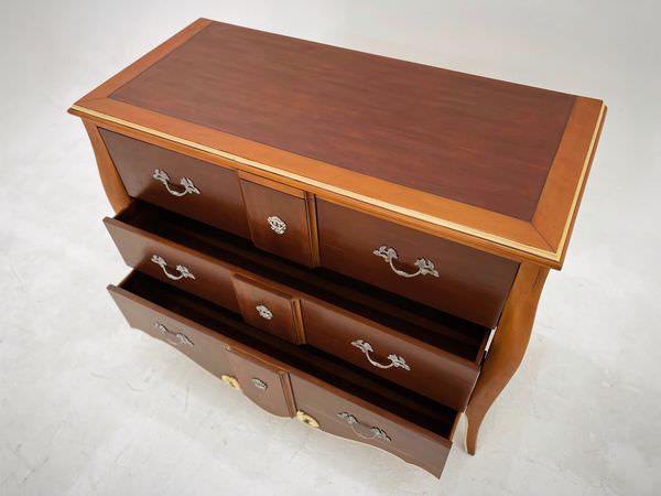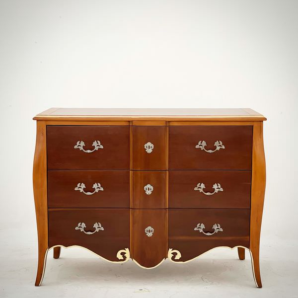 Gỗ Mahogany, veneer Ebony, sơn chuyên dụng, glaze giả cổ.
