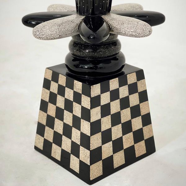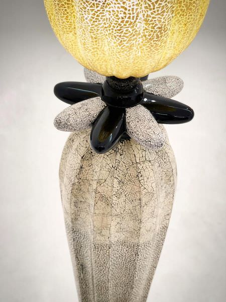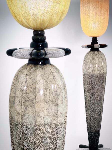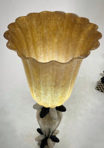 Gỗ Mahogany , chụp đèn fiber glass sơn mài cẩn vỏ trứng , sơn ta truyền thống .
