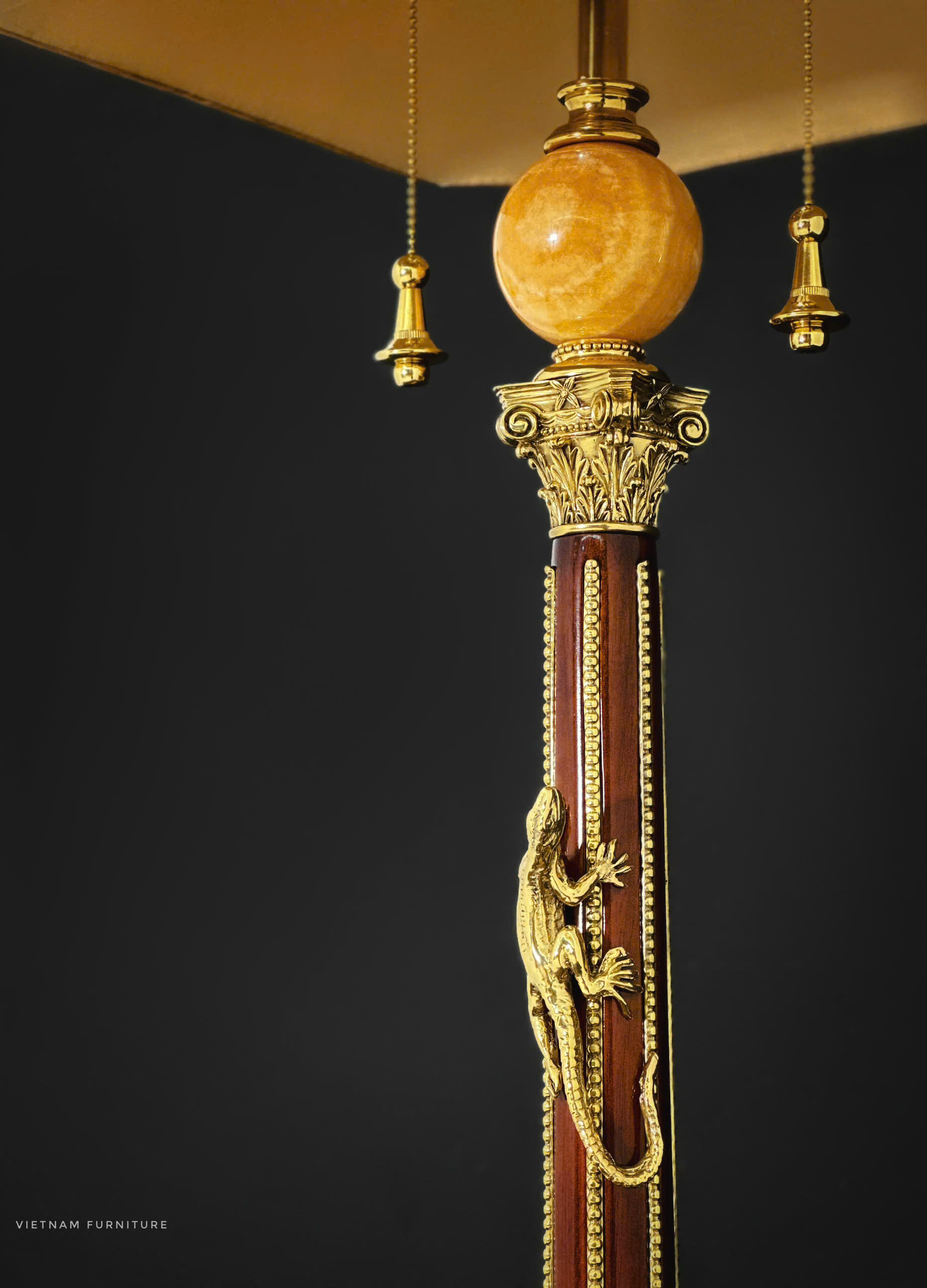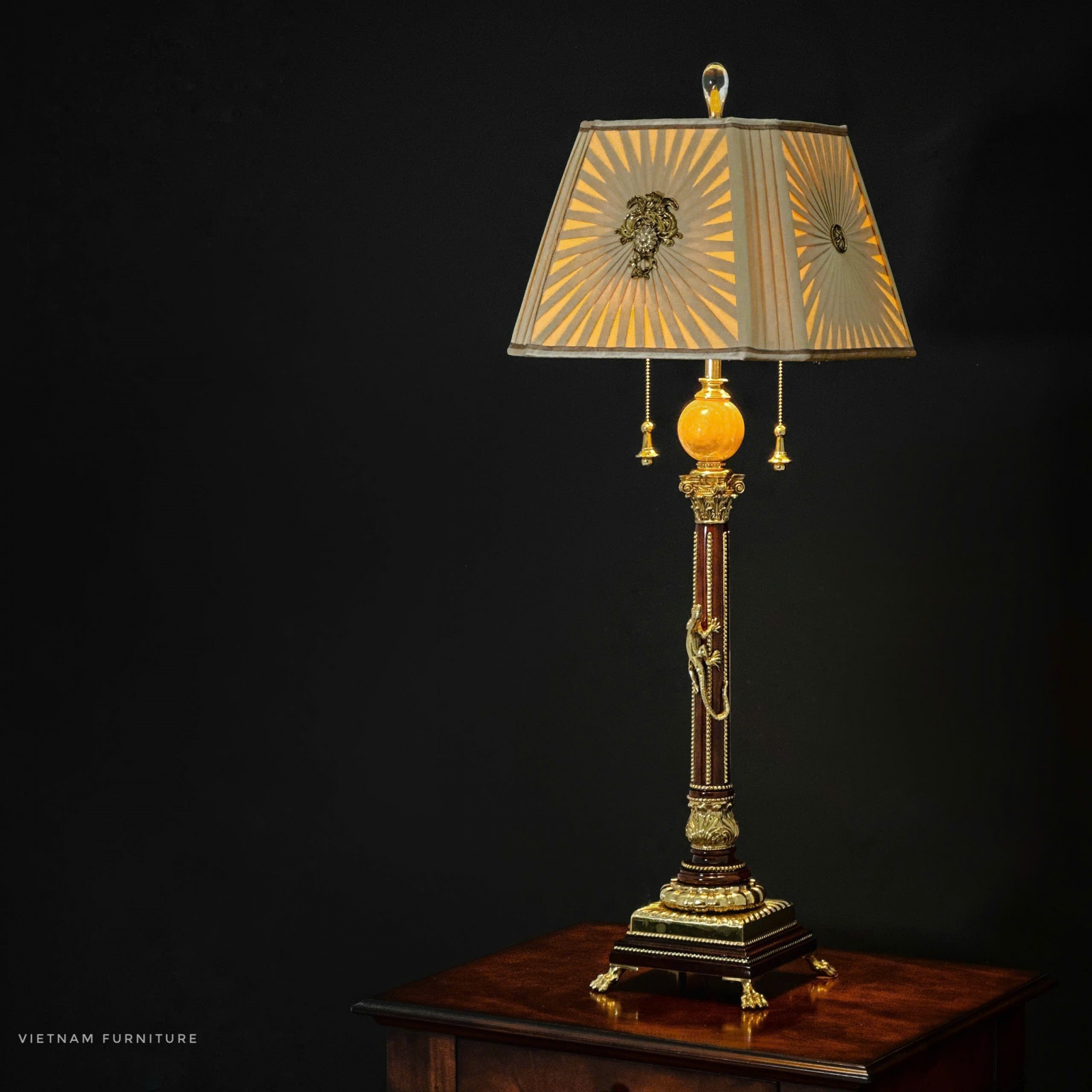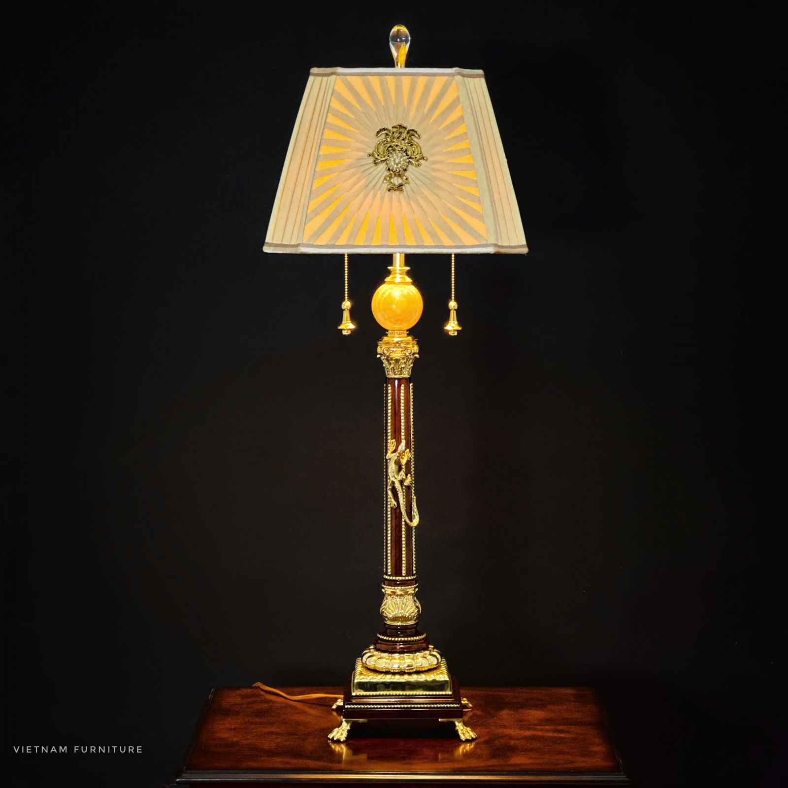 Gỗ Hồ Đào , hoạ tiết đồng Brass đúc , chao vải lụa nhập khẩu
