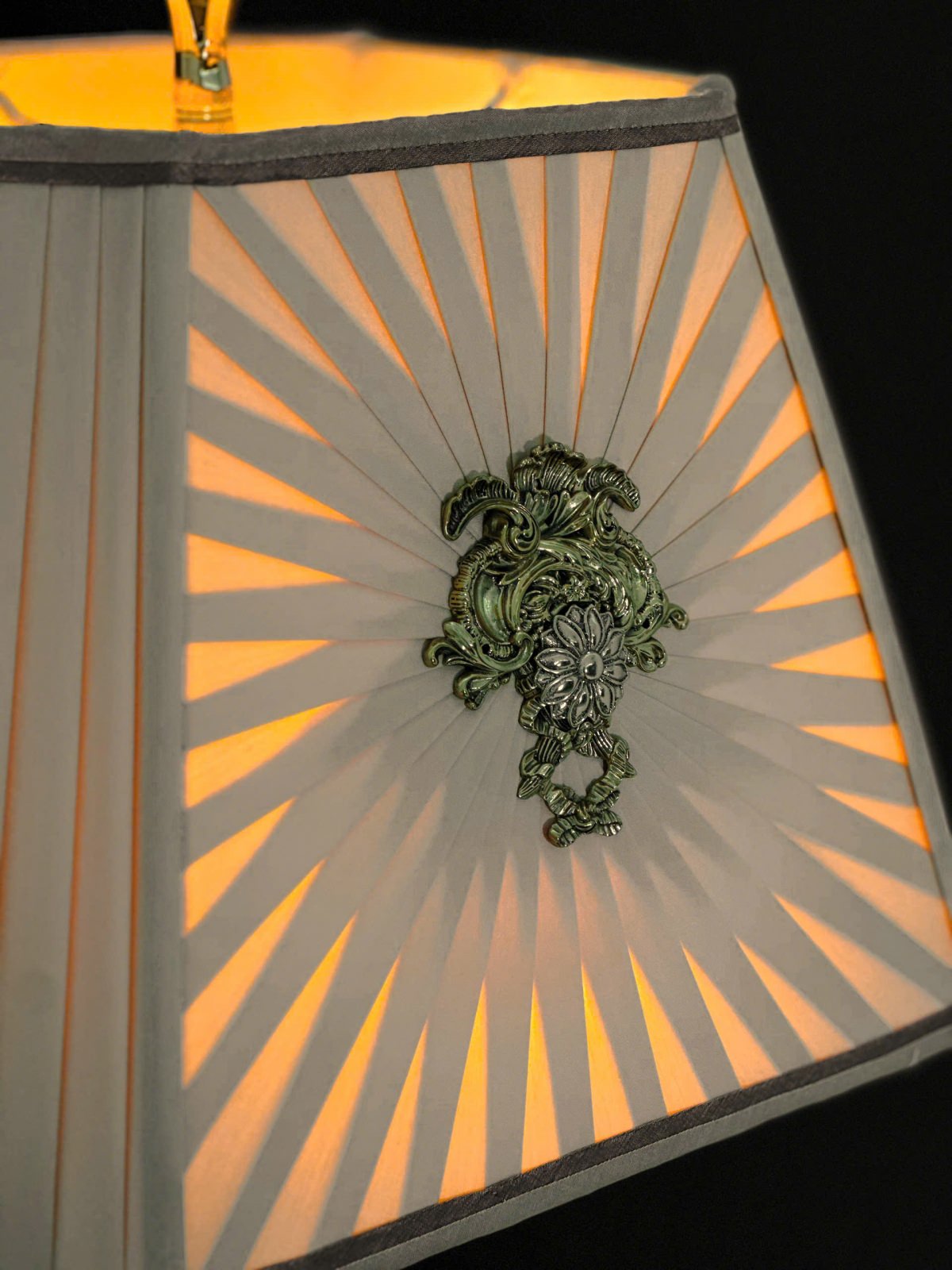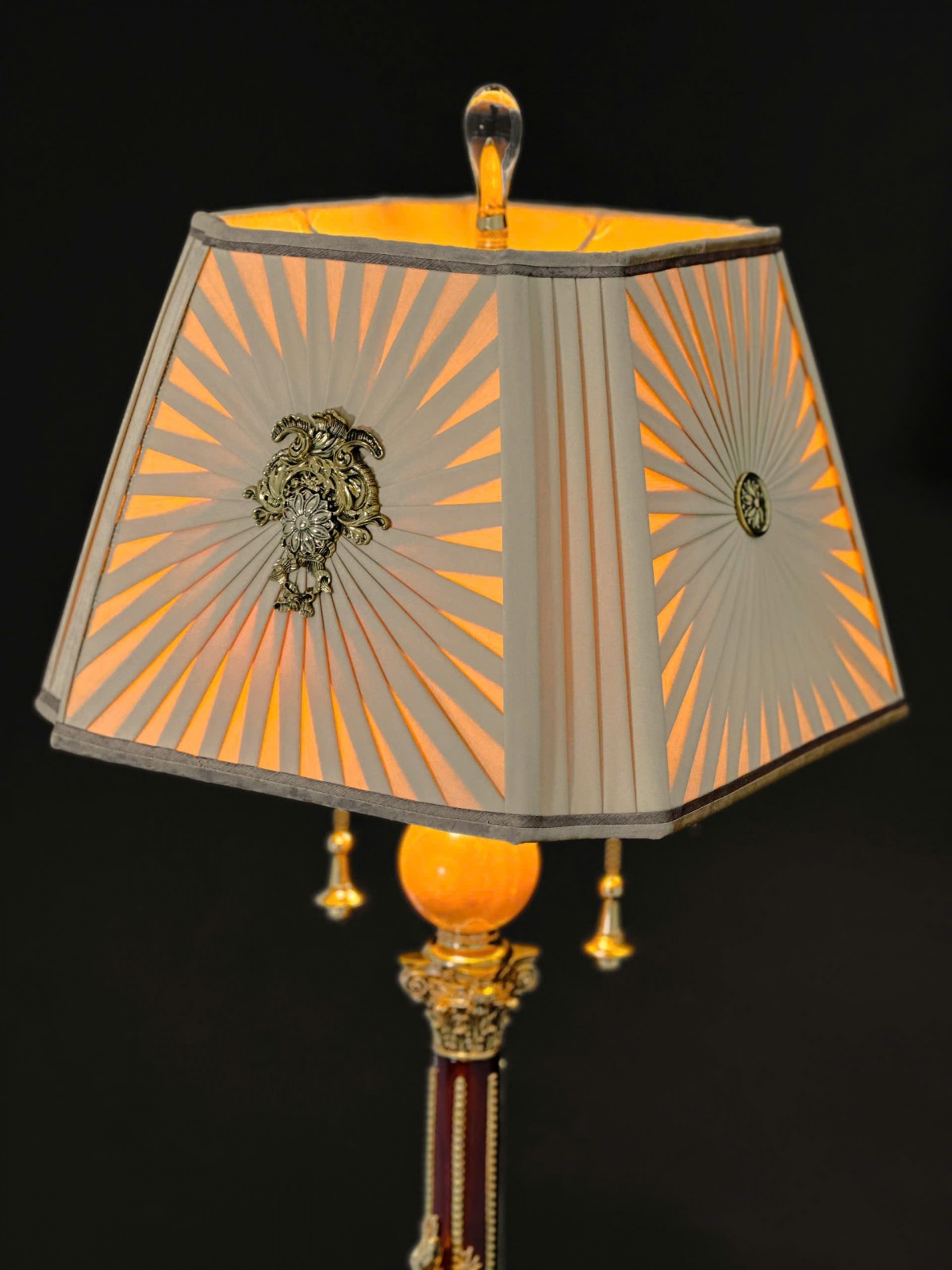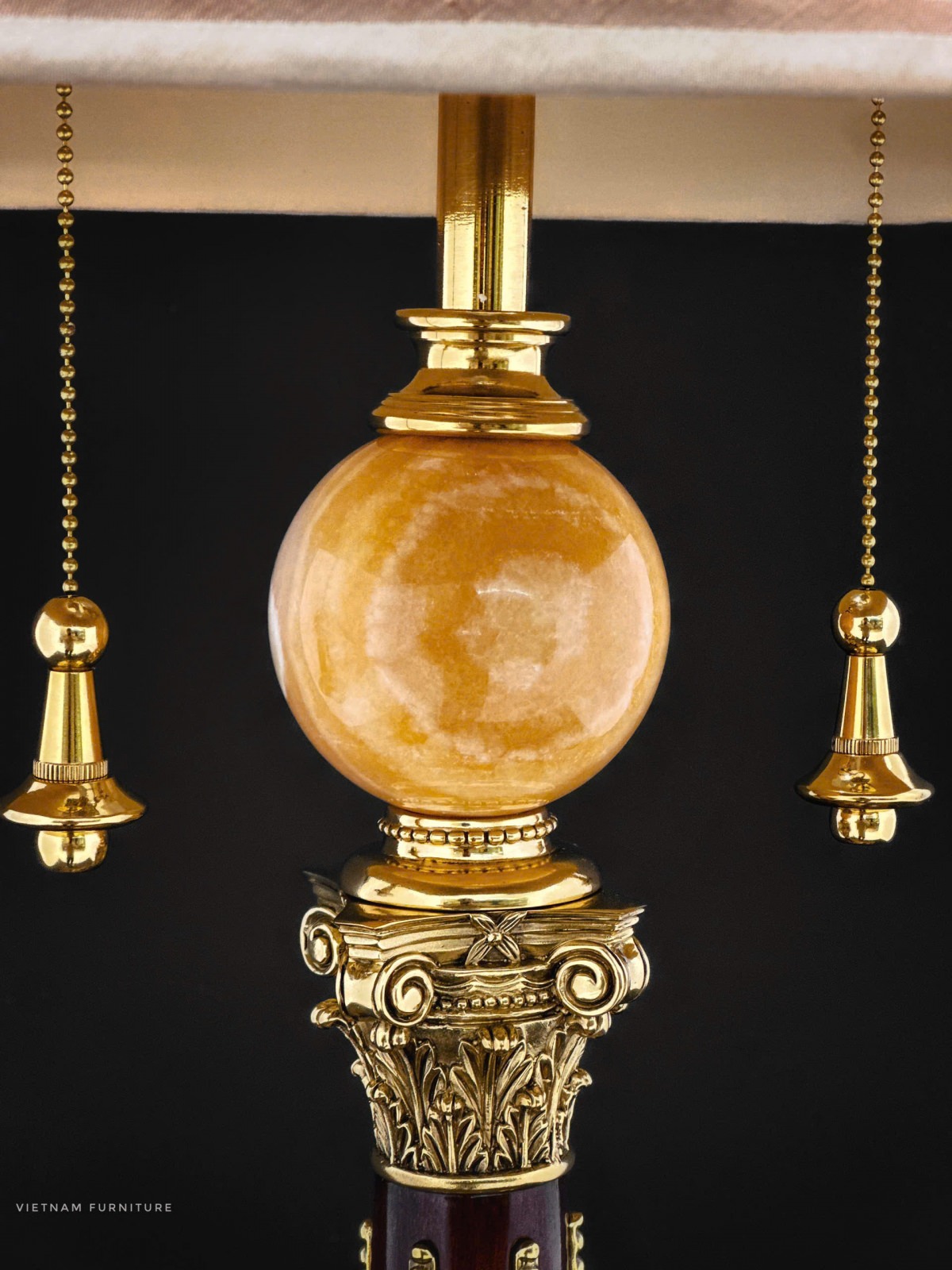 Gỗ Hồ Đào , hoạ tiết đồng Brass đúc , chao vải lụa nhập khẩu