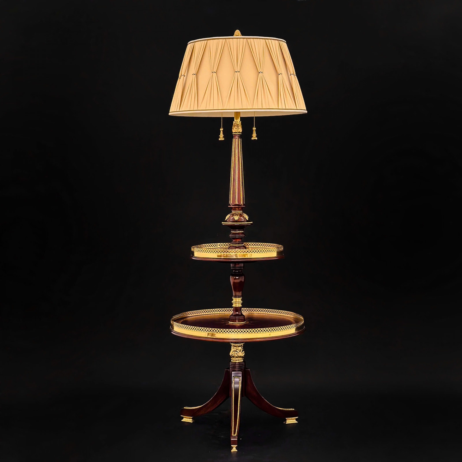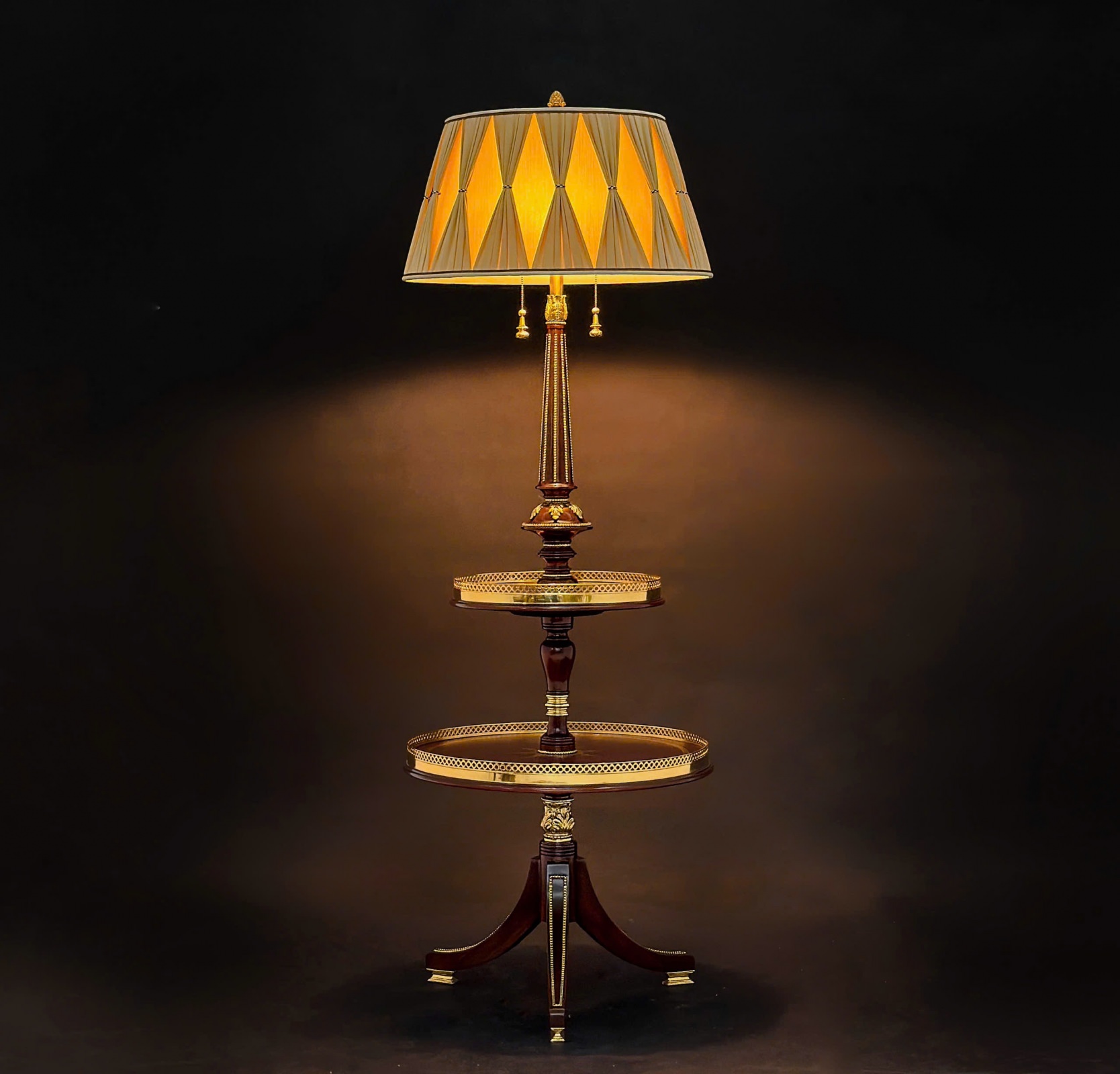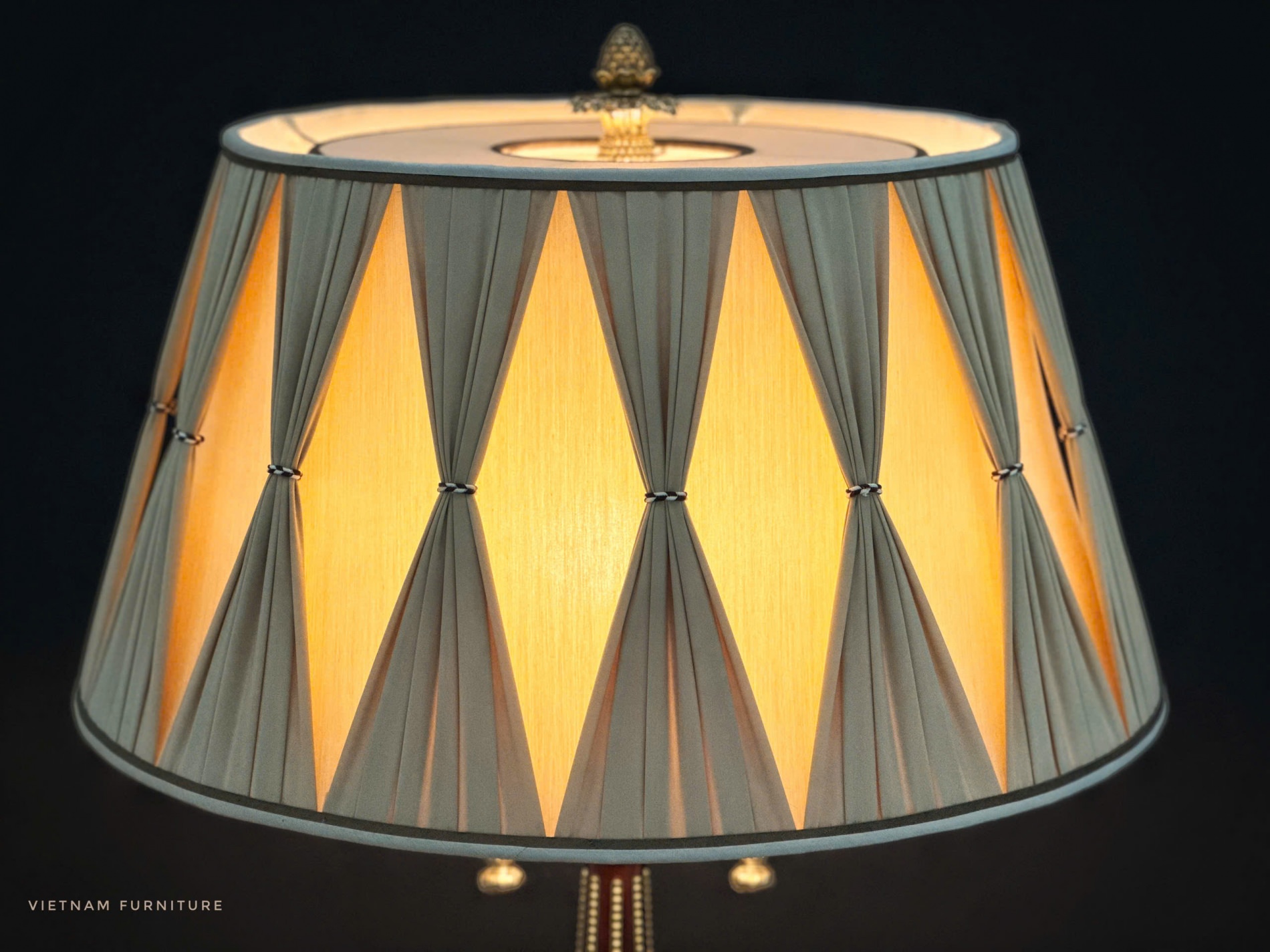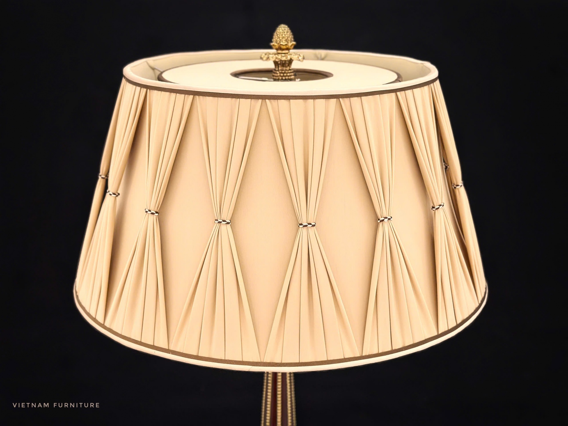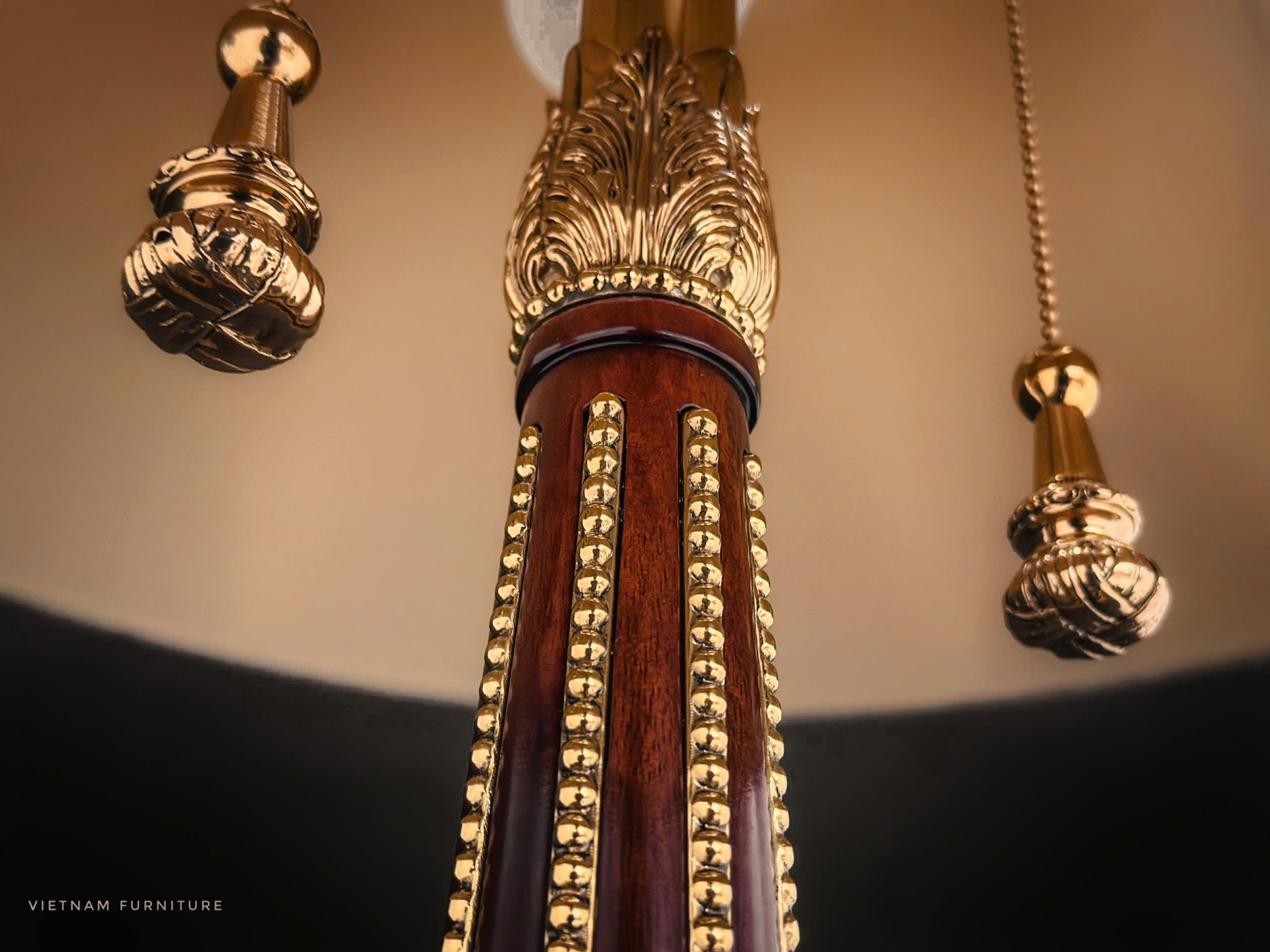Gỗ Hồ Đào , hoạ tiết đồng Brass đúc , chao vải lụa nhập khẩu