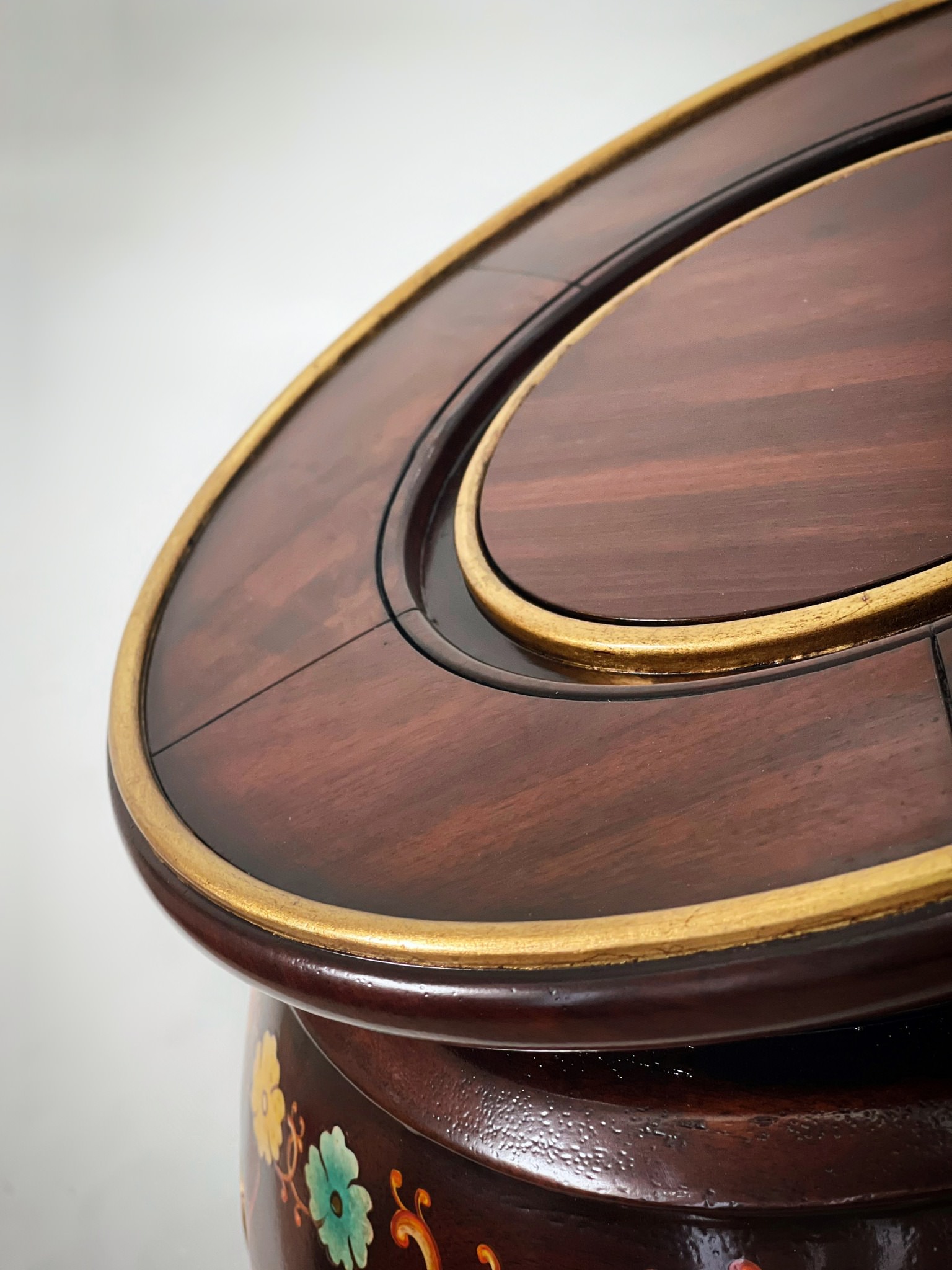 Chiếc đôn chạm tay kiểu truyền thống nhưng theo cách làm của phương Tây. Đôn sơn gốc nước màu nâu bình dị. Giăng trên bề mặt những nét vẽ tài tình của các nghệ nhân, những cánh hoa mềm mại trải trên lớp áo nâu mịn mượt.