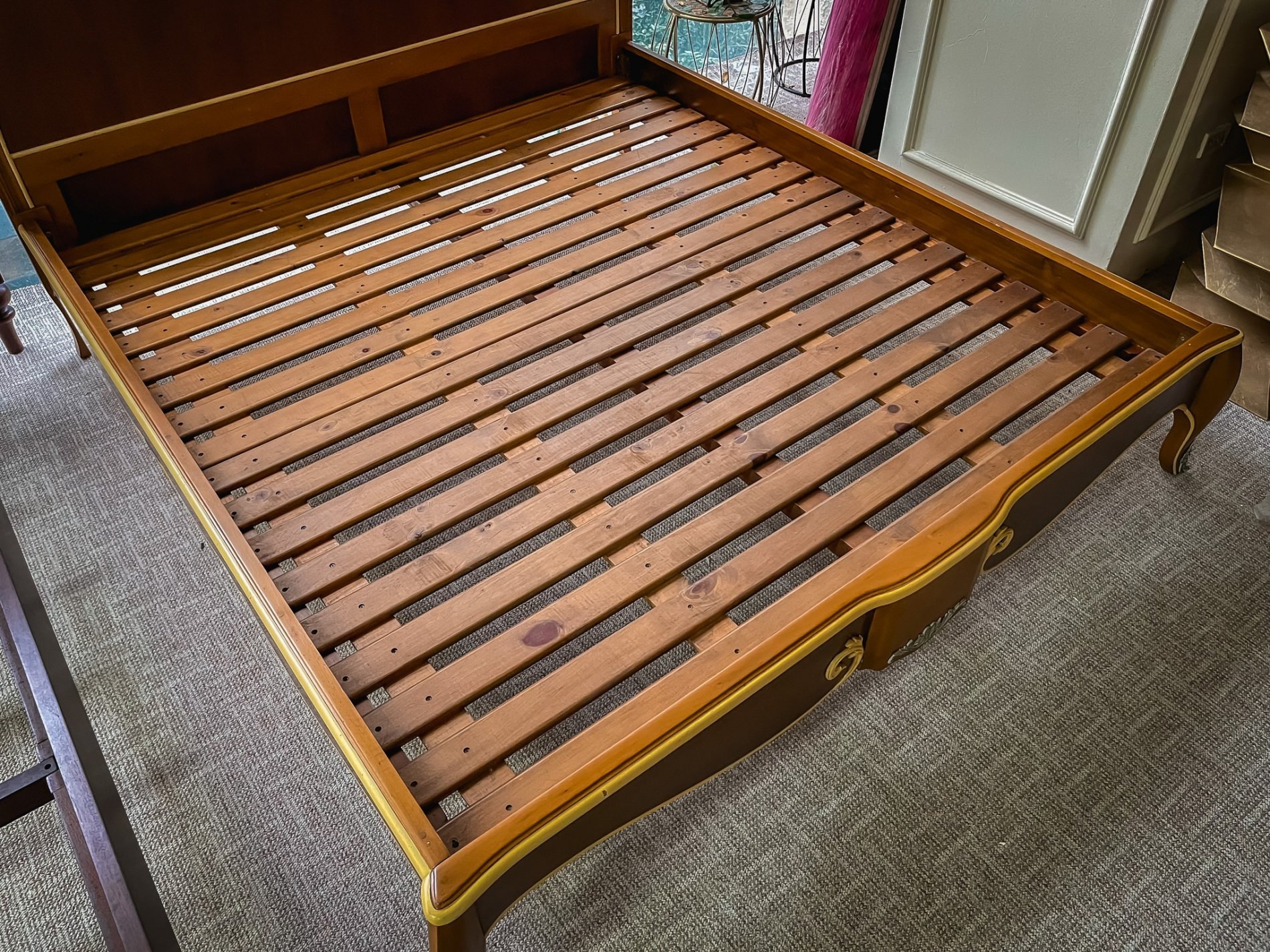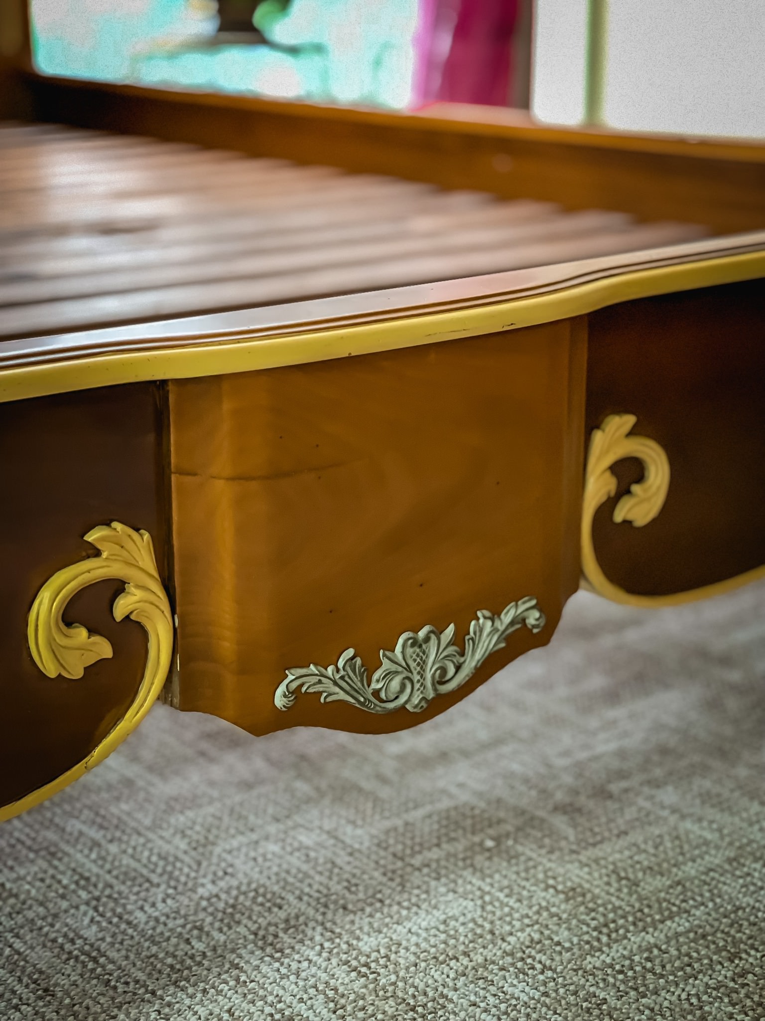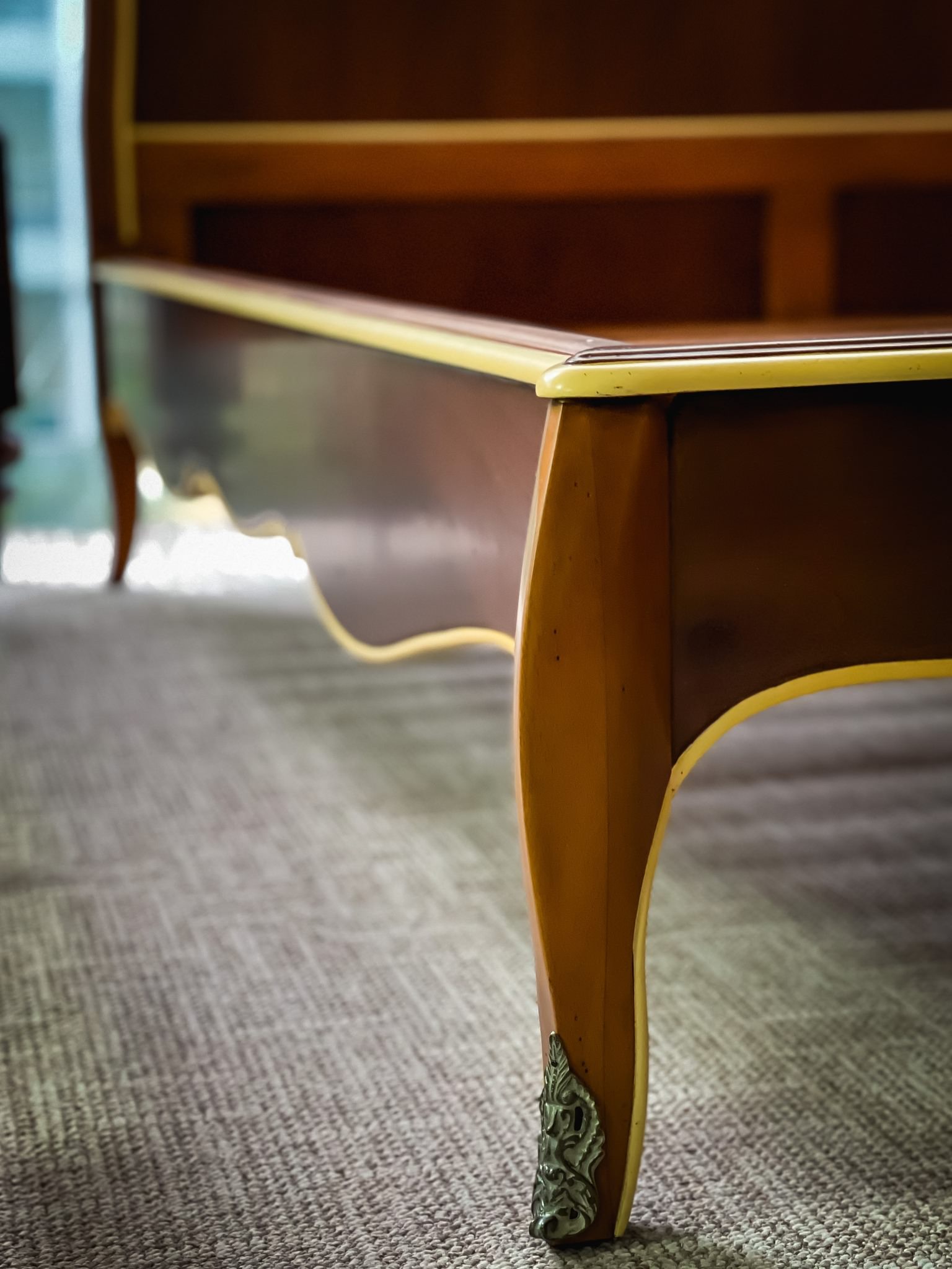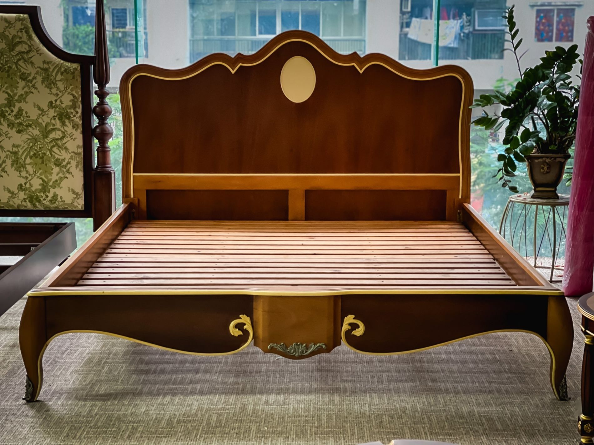 Hoàn thiện: gỗ Mahogany, sơn gốc tự nhiên, sơn giả cổ.