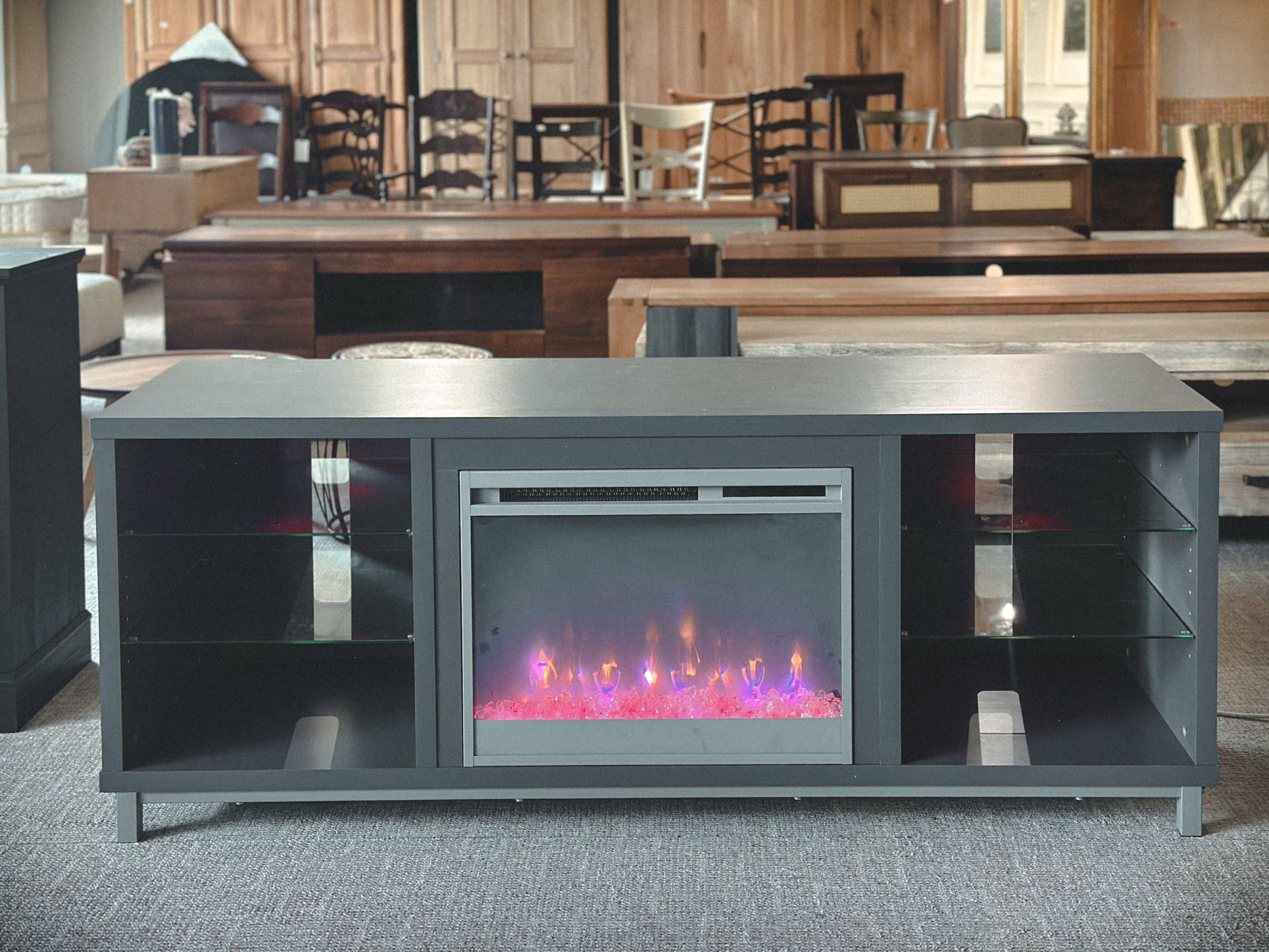 - Đèn LED: Kệ bên hông được chiếu sáng bằng đèn LED màu xanh lam tùy chọn, tạo thêm điểm nhấn phong cách cho chân đế TV, bổ sung cho lò sưởi rực rỡ.