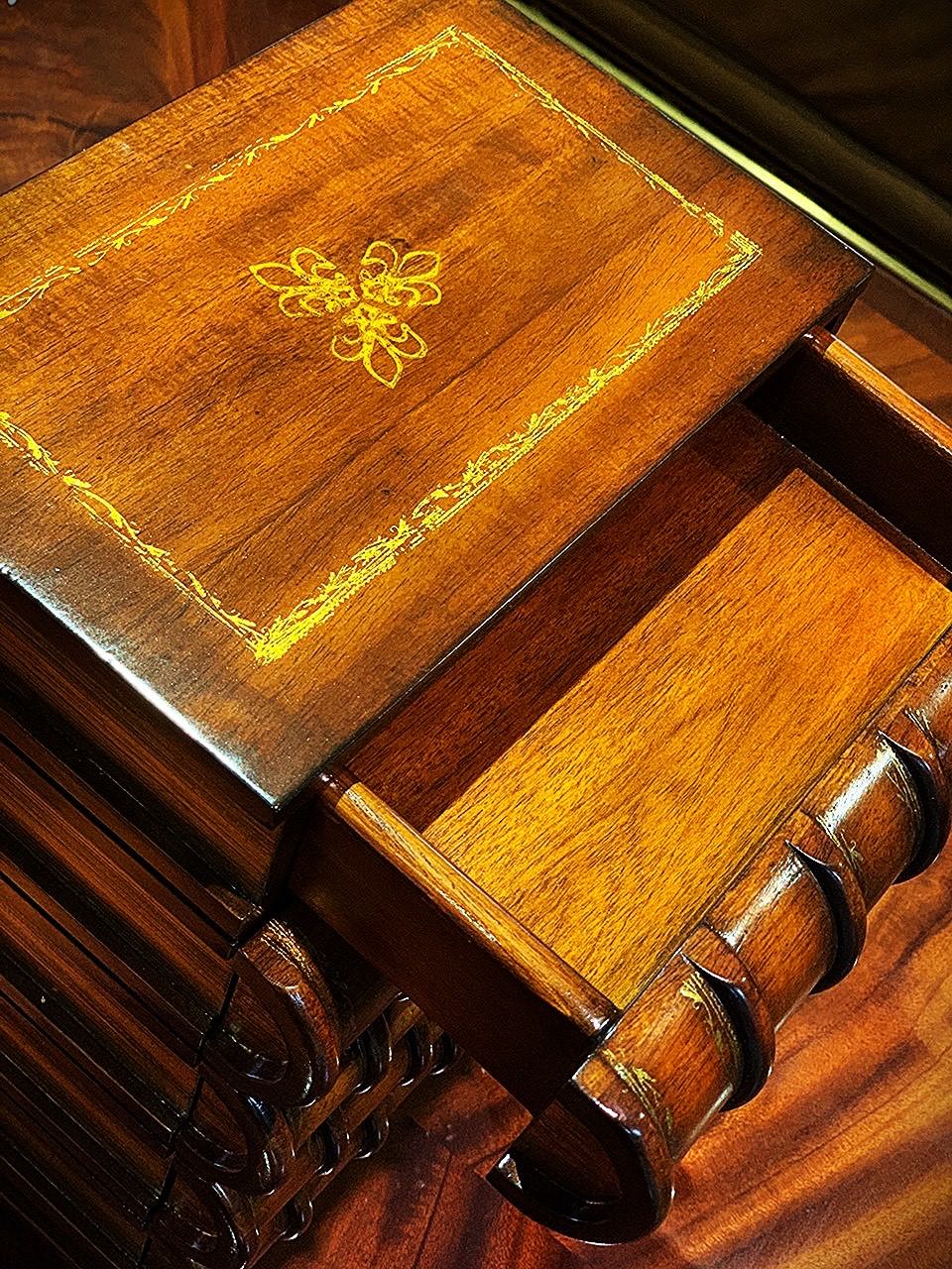 Hoàn thiện: Gỗ Hồ Đào, dát lá vàng cùng Glaze giả cổ , chân đế Bunn feet.