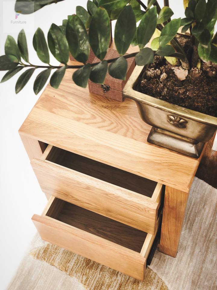 Tab được thiết kế hình khối kết hợp cùng các đường bo cong mềm mại đã mang đến một mẫu tab đầu giường vừa duyên dáng lại vừa có nét lịch lãm, khỏe khoắn. Với 2 ngăn kéo, chiếc tab sẽ đáp ứng mọi nhu cầu lưu trữ, bảo quản đồ dùng cá nhân.