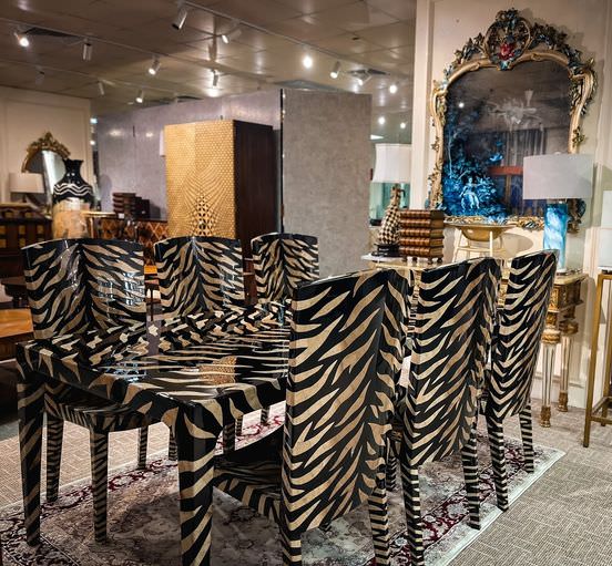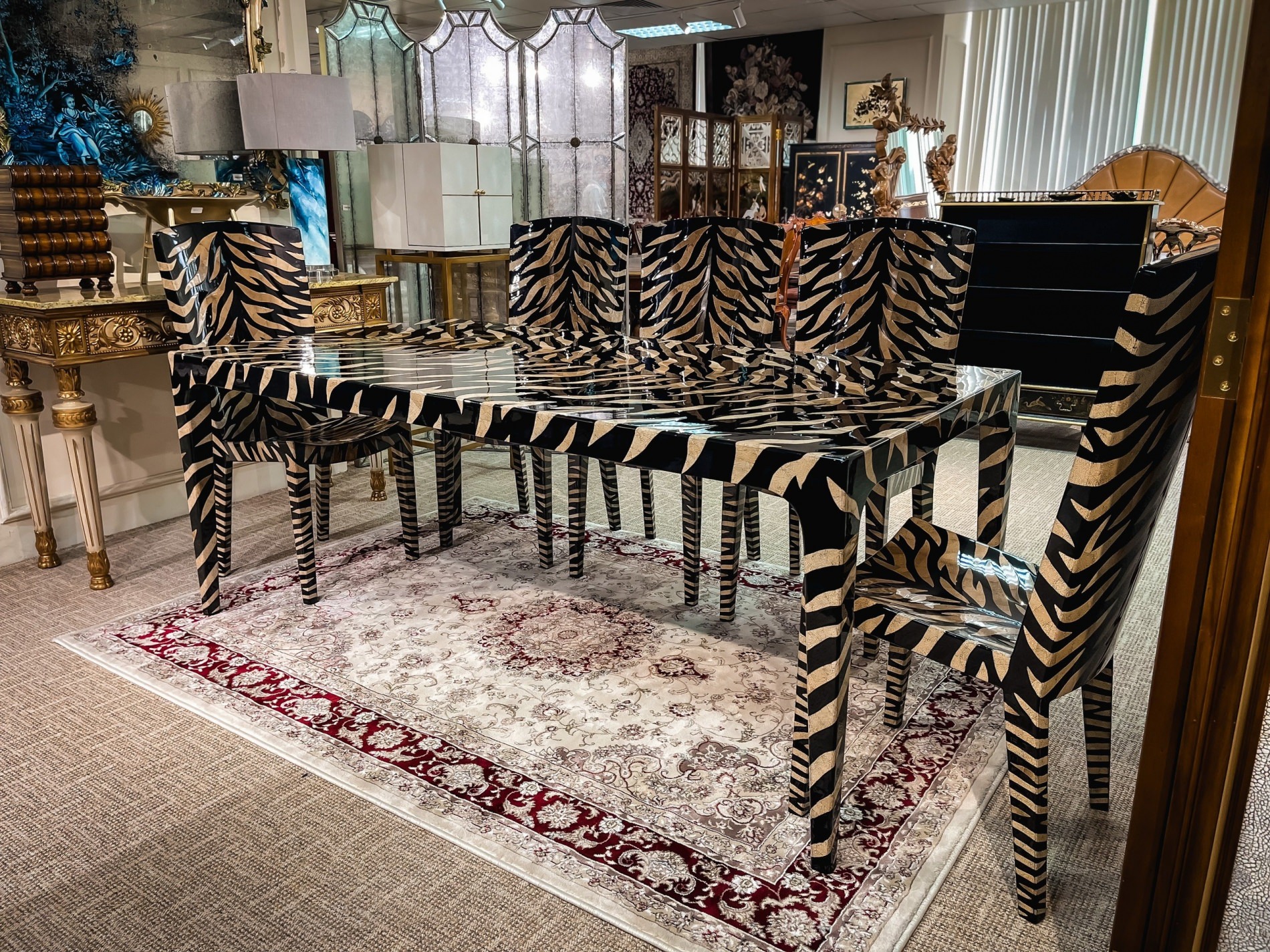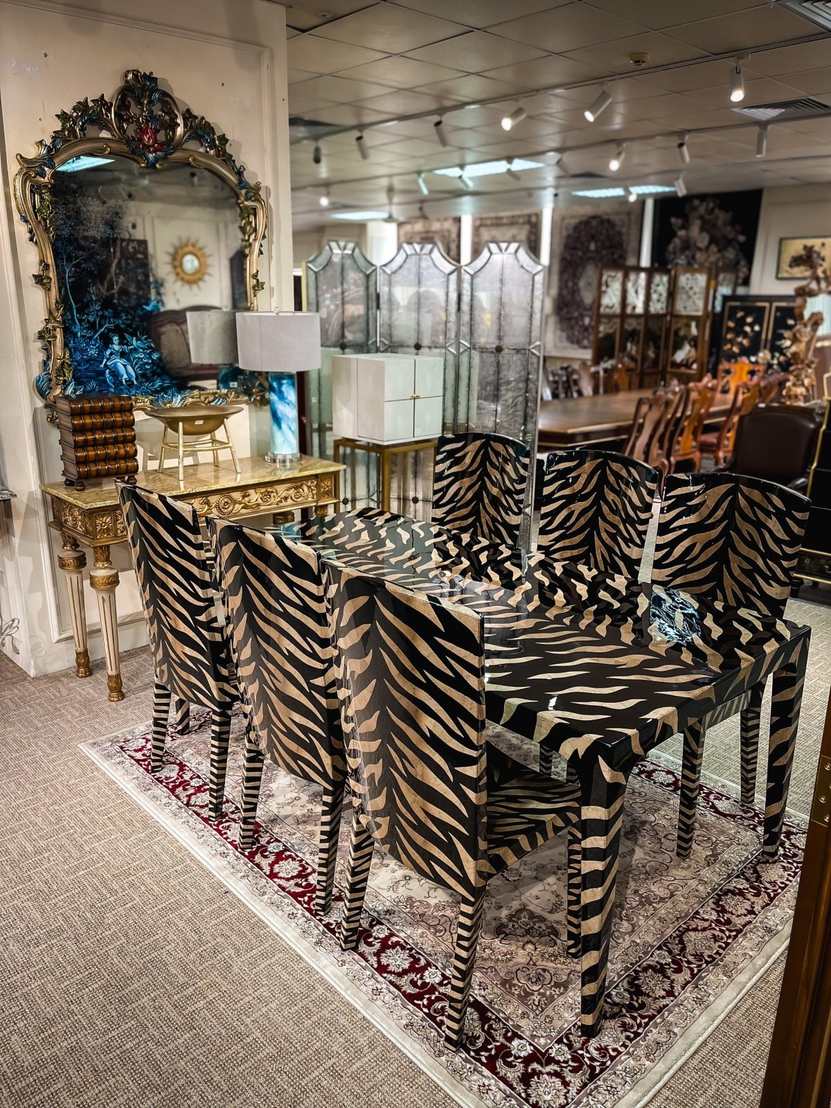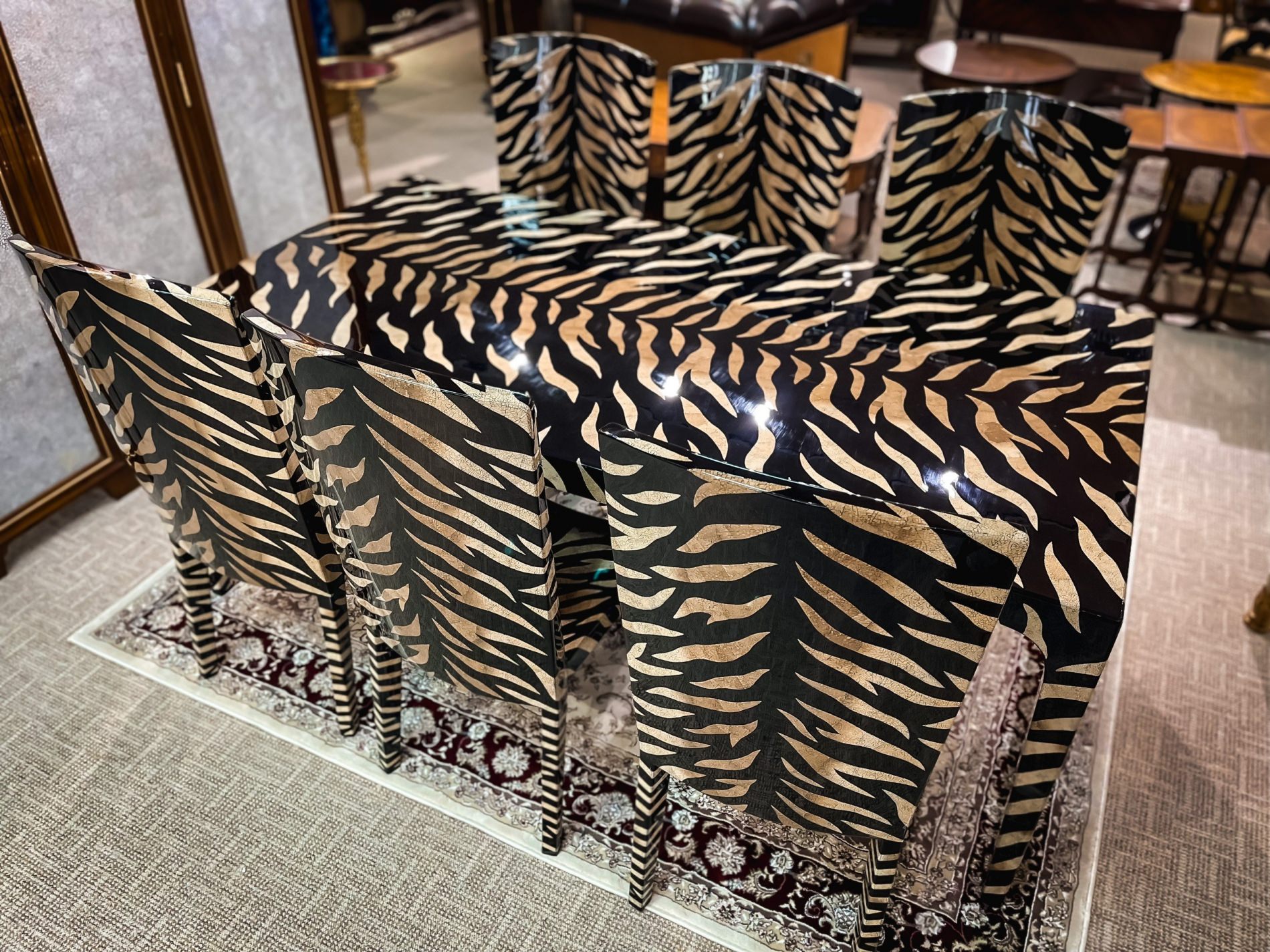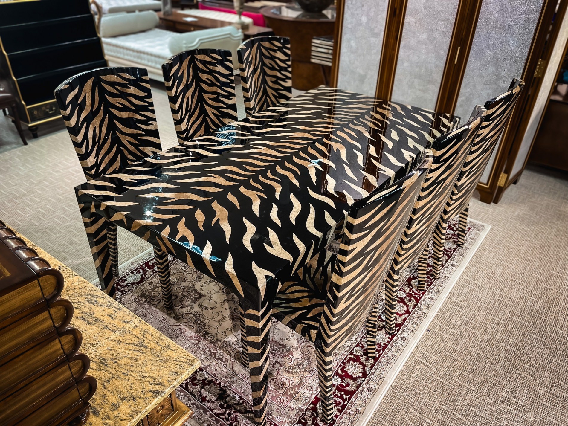 Tiger stripes Eggshell with Black back ground (Bộ 1 bàn 6 ghế)