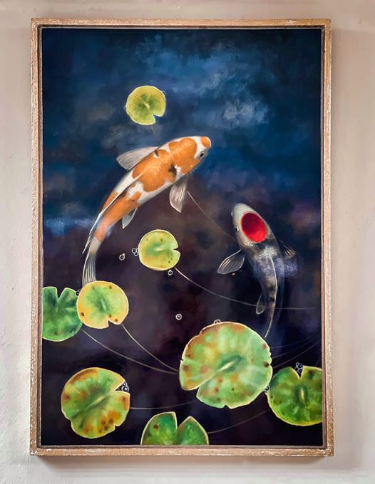 • Tranh cá Koi đang là xu hướng được mọi người lựa chọn dùng trang trí tường. Từ lâu, cá Koi (cá chép) được xem là một biểu tượng cho ước vọng, lòng kiên trì và sức mạnh. Hoa sen tượng trưng cho sự thanh cao, thoát tục và hoàn mỹ. Hoa sen giúp con người có thể tịnh tâm, làm không gian trưng bày trở nên ấm áp, yên bình hơn. Bên cạnh đó, hoa sen giúp điều hòa khí vượng, tăng cường năng lượng tốt và ngăn chặn những điều xấu, giúp cho gia chủ tránh ưu phiền để tĩnh tâm an hưởng hạnh phúc. Vì thế, ngư sen luôn là một chủ đề sáng tác bất tận.